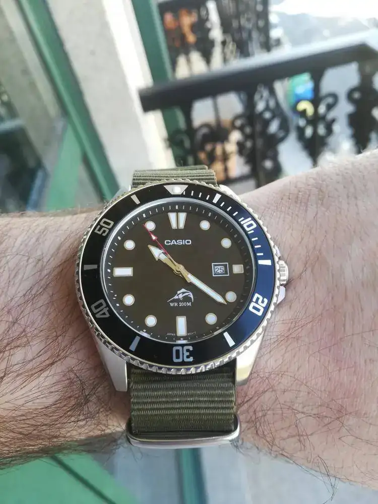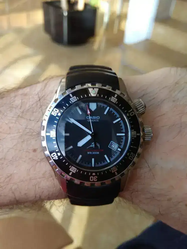 Bueno hoy con un Citizen Mako 1, que aun traía un buen armis, se lo he cambiado a una correa de silicona, que encuentro más cómoda y ligera.