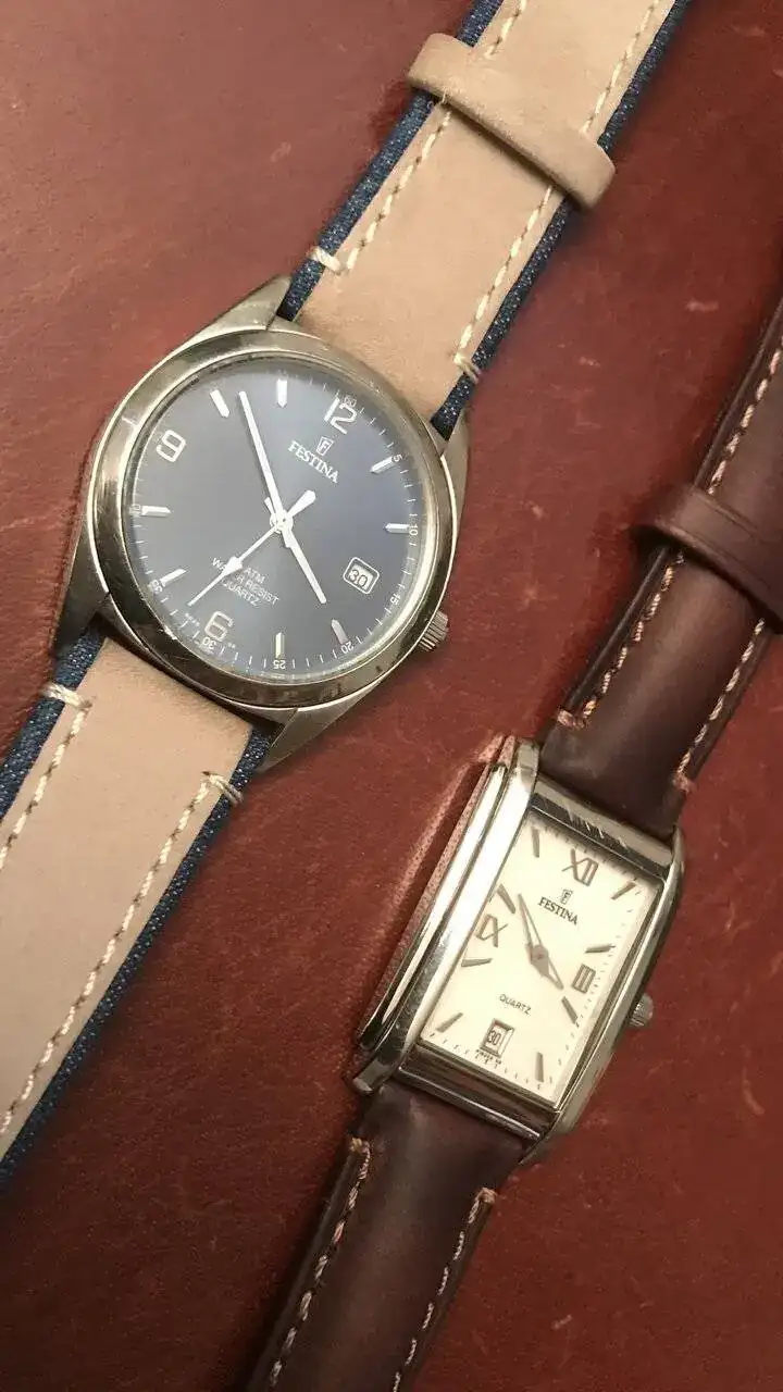 curiosamente, siempre he tenido aprecio por la marca Festina ( solo tengo uno ) me parecen relojes sencillos y elegantesSon buenos, son bonitos, son baratos y siguen en mi colección, con las cicatrices que va dejando la vida pero funcionando a la perfección, los dos son de principios de siglo, uno de 2006 y otro de 2003 y no tengo claro cuál de los dos ponerme.Ver el archivos adjunto 2783989
