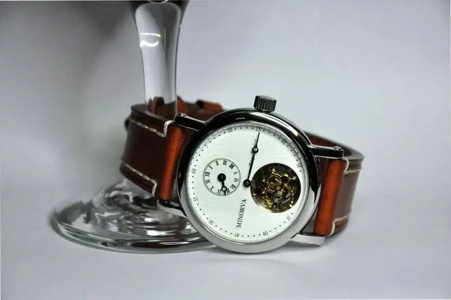 Minorva "Flying tourbillon" Regulateur. Desde que lo compré hace cinco meses, mantiene un desfase constante de -1 seg diario.