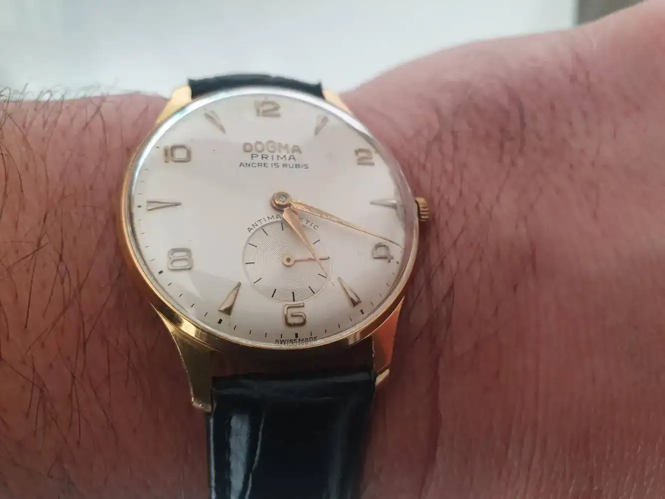El Cyma de mi padre. De sus años mozos porque después tuvo otros relojes. La restauración sufrío el libre albedrío del esferista pero bueno, al menos luce espléndido.