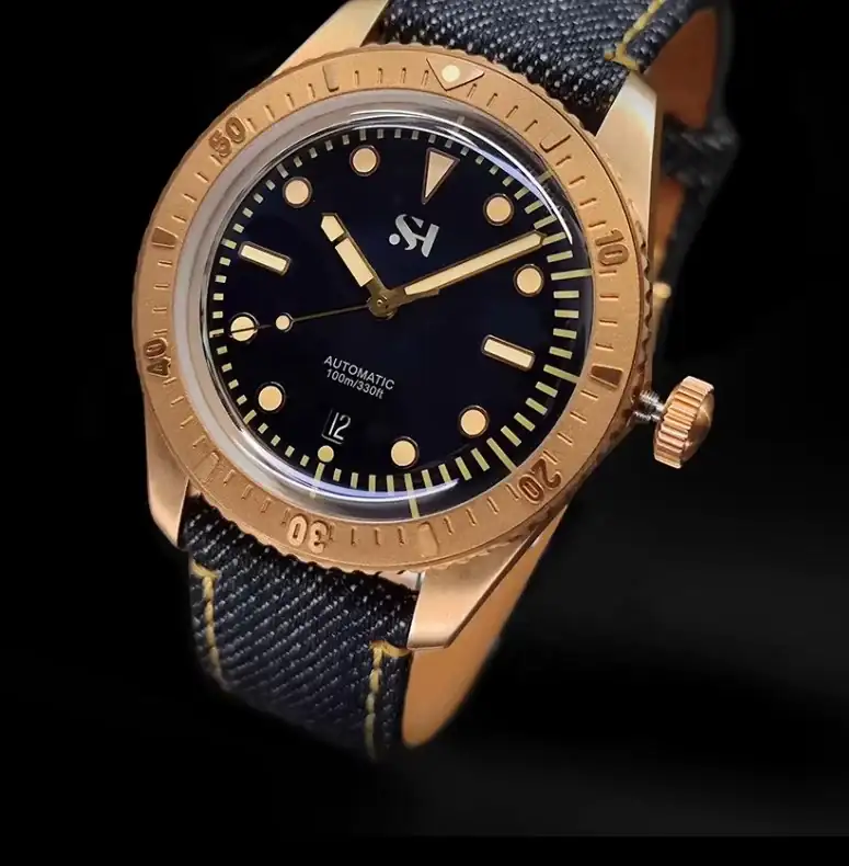Sh Bronze Uhren Geschäft einfache Männer mechanische Uhr Horween Leder armband einzigartige Denim Relojes leuchtend 100m wasserdicht cusn6 - AliExpress 1511