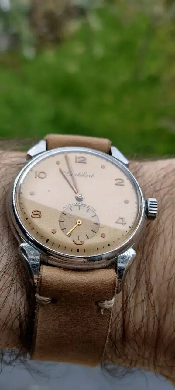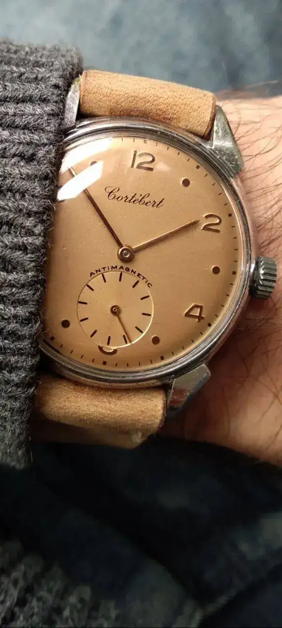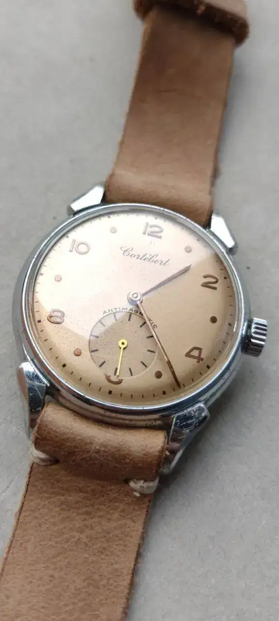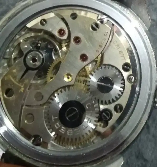 Monta un calibre Cortebert 677 de los primeros, será de mediados de los 40, no tiene incabloc. En 1950 el 677 ya se empezó a fabricar con incabloc. Ver el archivos adjunto 2721110