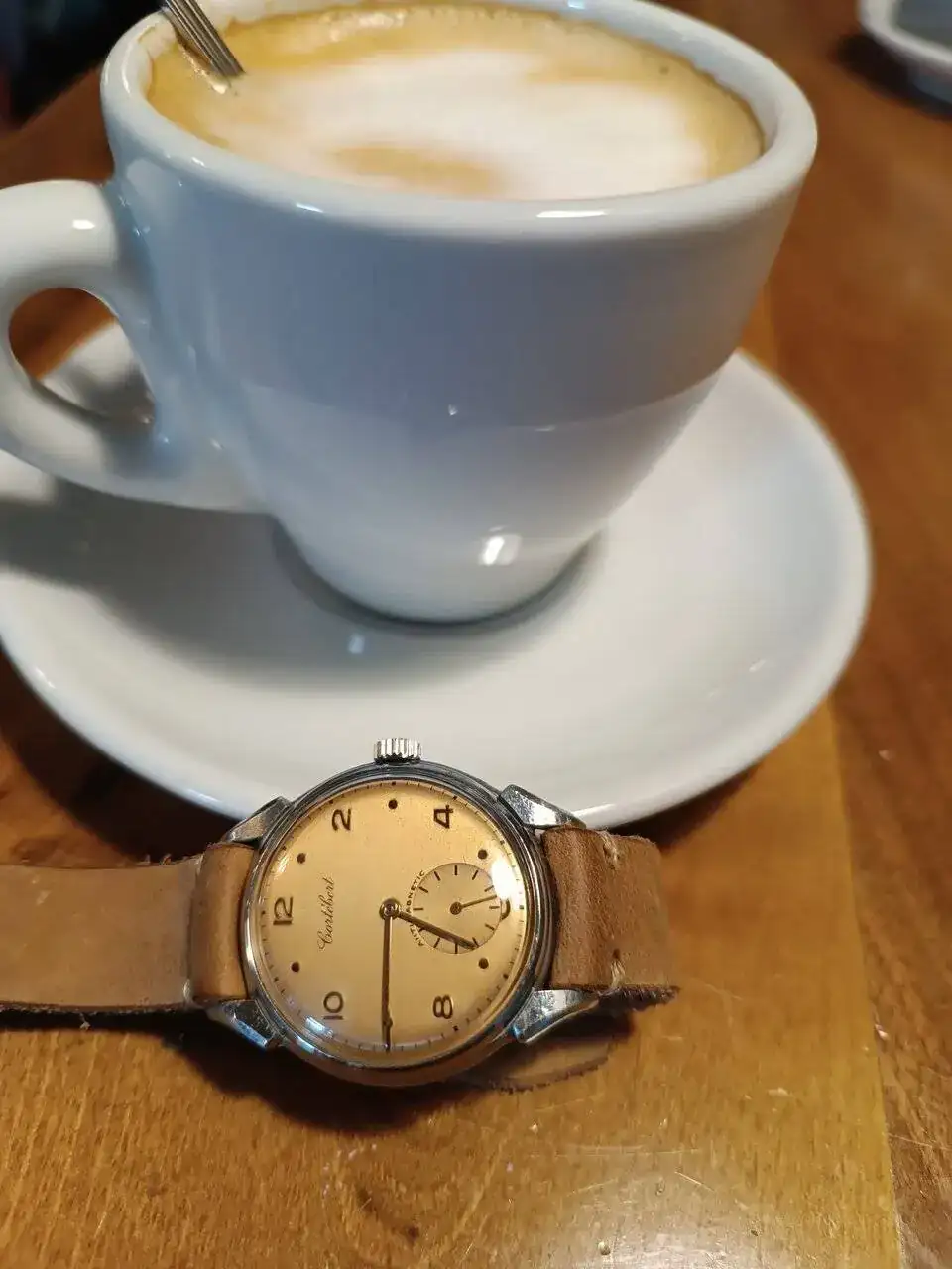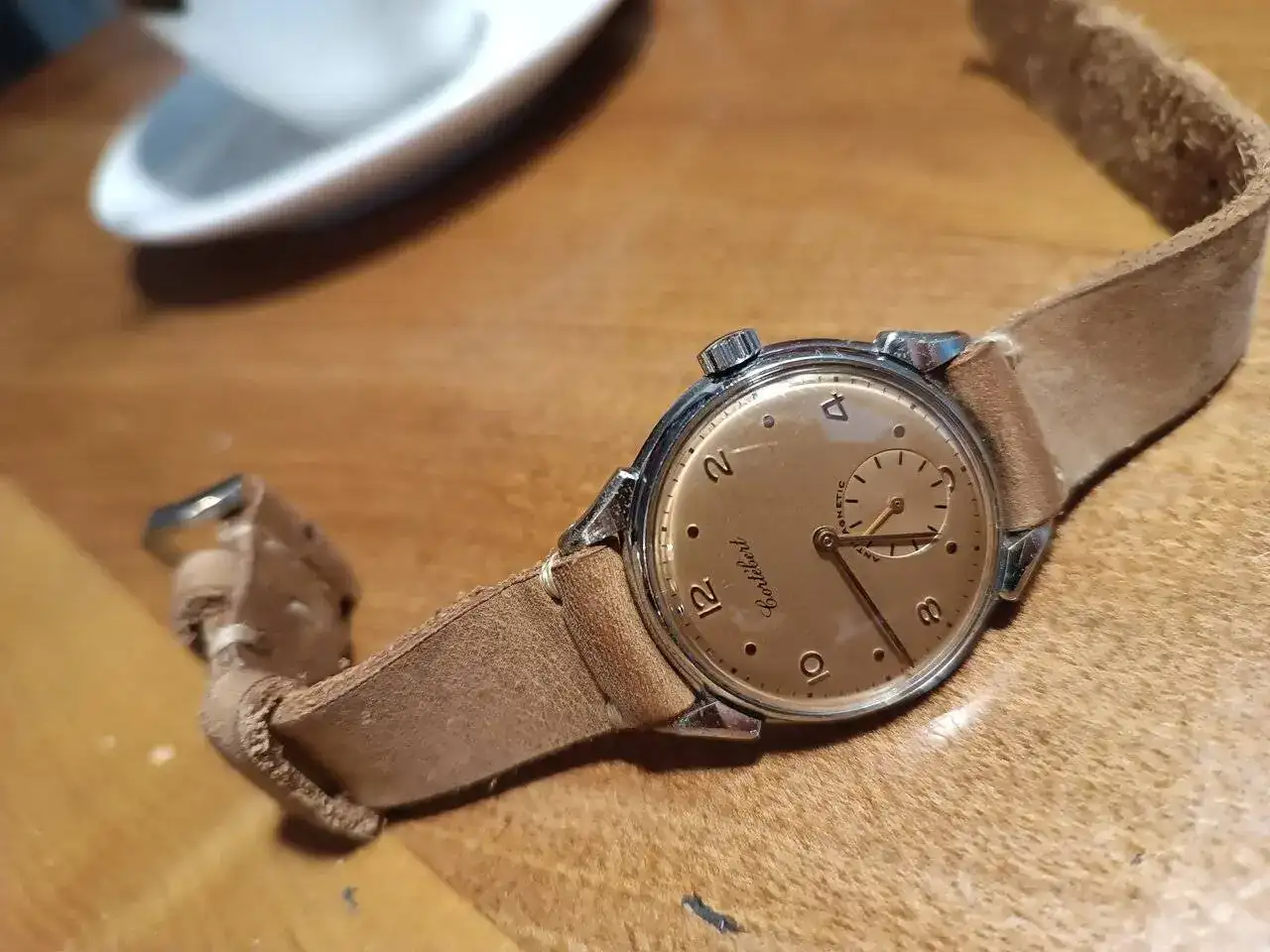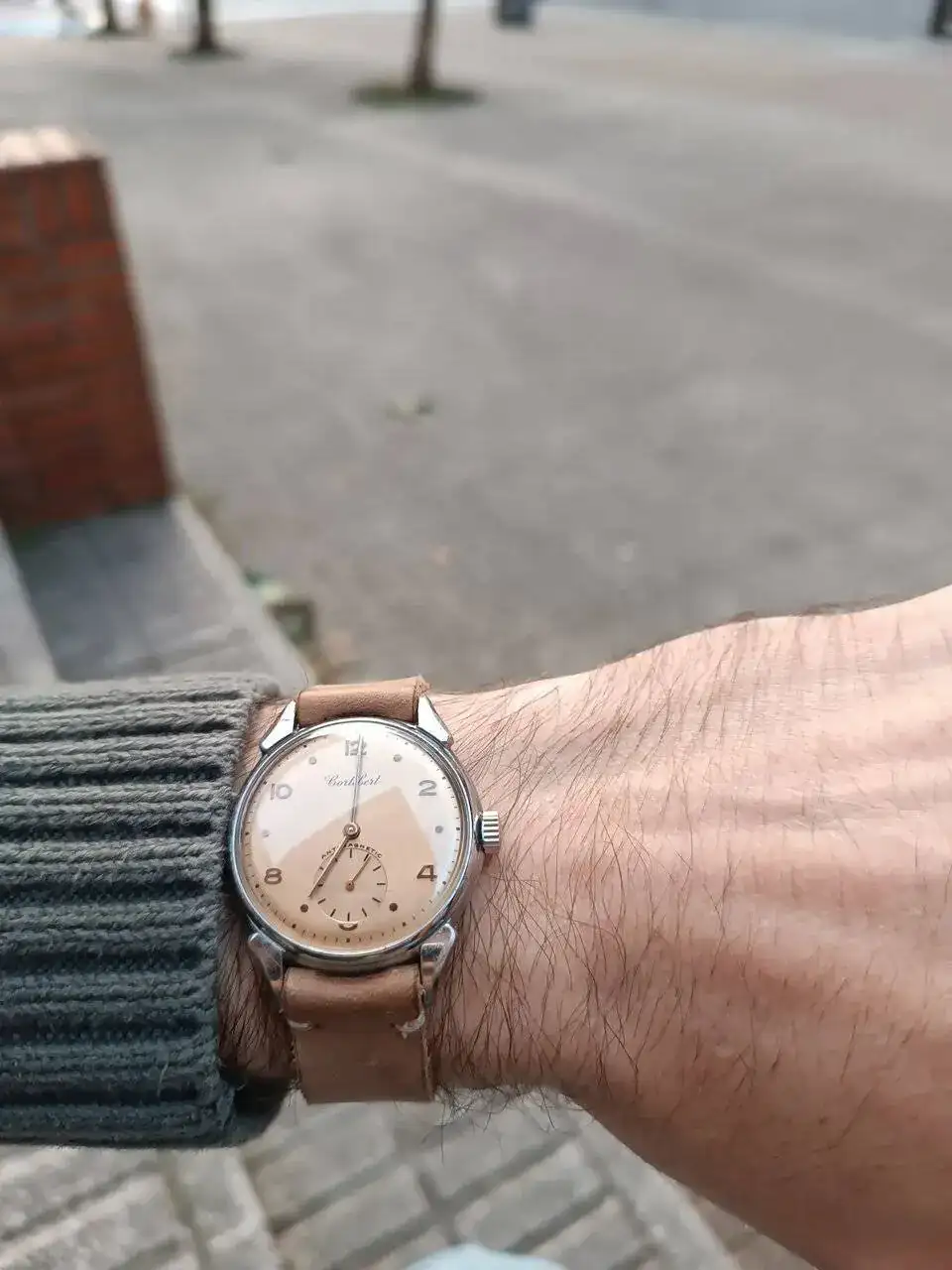 Monta un calibre Cortebert 677 de los primeros, será de mediados de los 40, no tiene incabloc. En 1950 el 677 ya se empezó a fabricar con incabloc. Ver el archivos adjunto 2721110