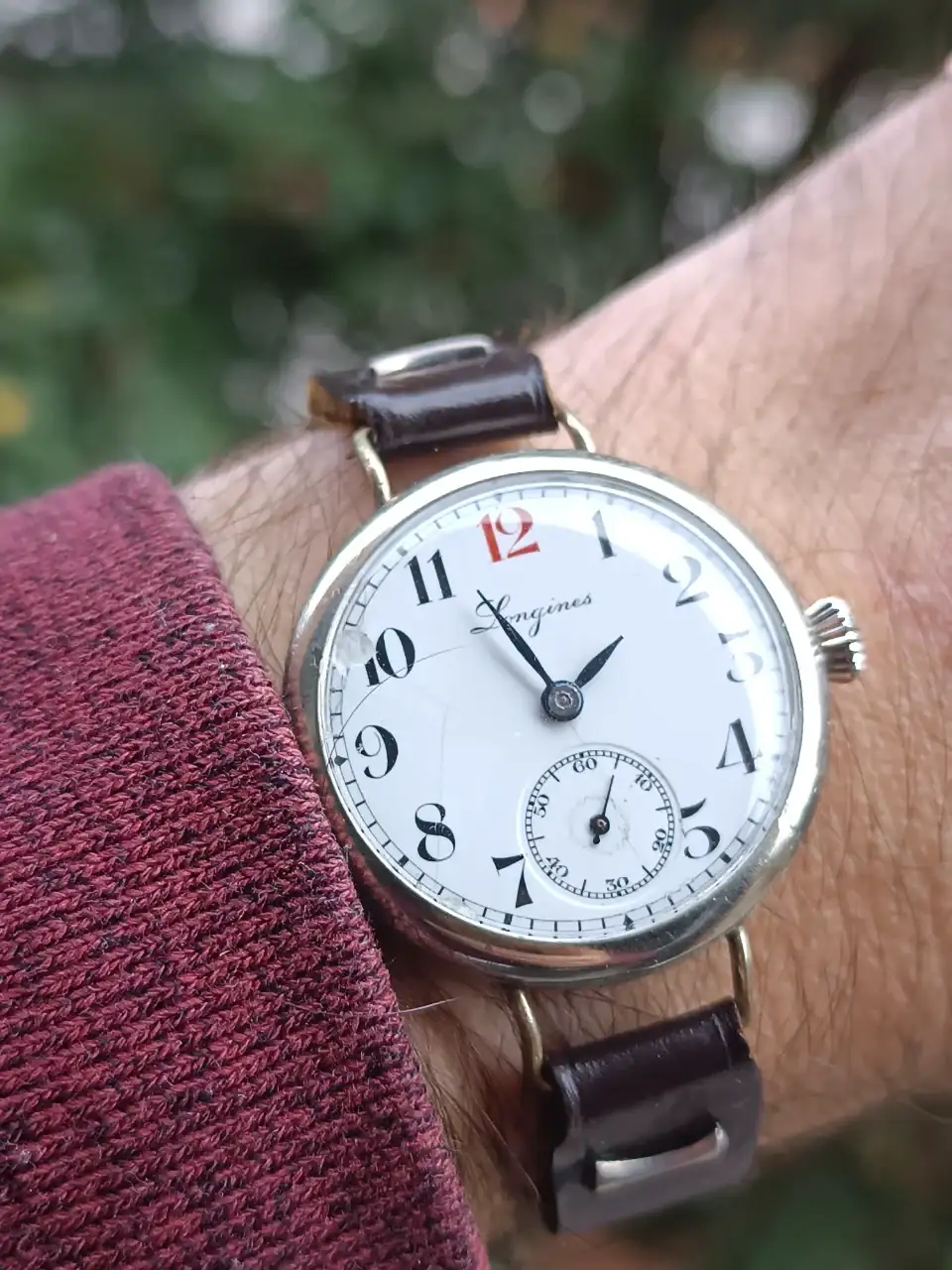 Gracias por la explicación, ciento y pico de años , !!!!!!lo que habrá vivido ¡¡¡ bonito por fuera y también por dentro .Es porcelana😉. Ya lo compré con el cantazo🤣, el reloj salio barato. Las agujas están partidas pero son las originales( pavonadas), el calibre es un 13.34 con la esfera con el 12 en rojo, también lo puedes ver con el 12 en el mismo color que el resto de numeros, la caja no es Longines. Estos relojes vienen con el mismo número de caja que de calibre y con el calibre 13.34 suelen medir 32 mm sin corona.