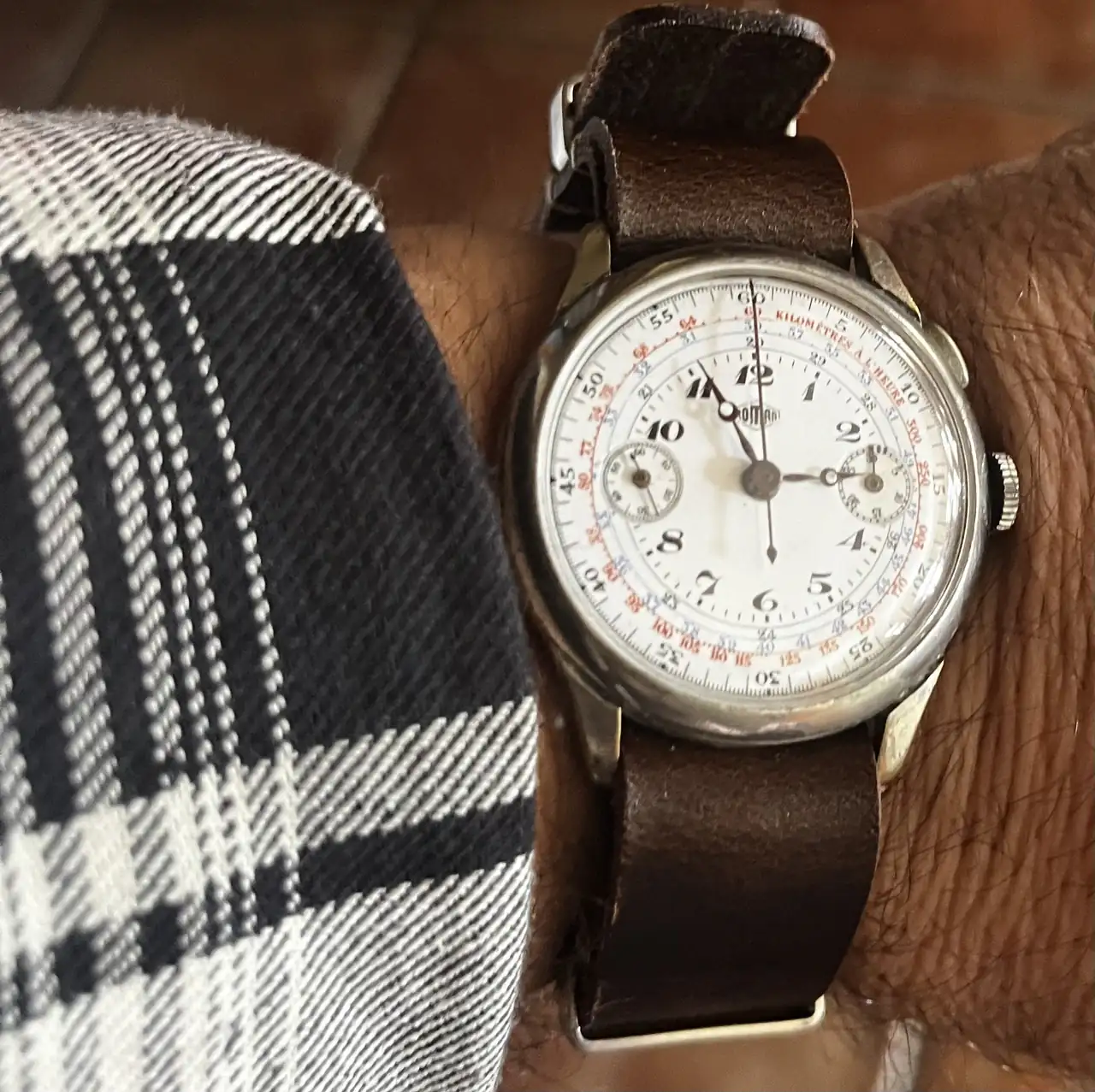 Pues, el viejo cronógrafo de carga manual, de dudosa procedencia, de mi abuelo. Para días que no hay que salir más que del sofá al microondas para las palomitas. Este no me gusta sacarlo de casa. Tontás mías. Un saludo.