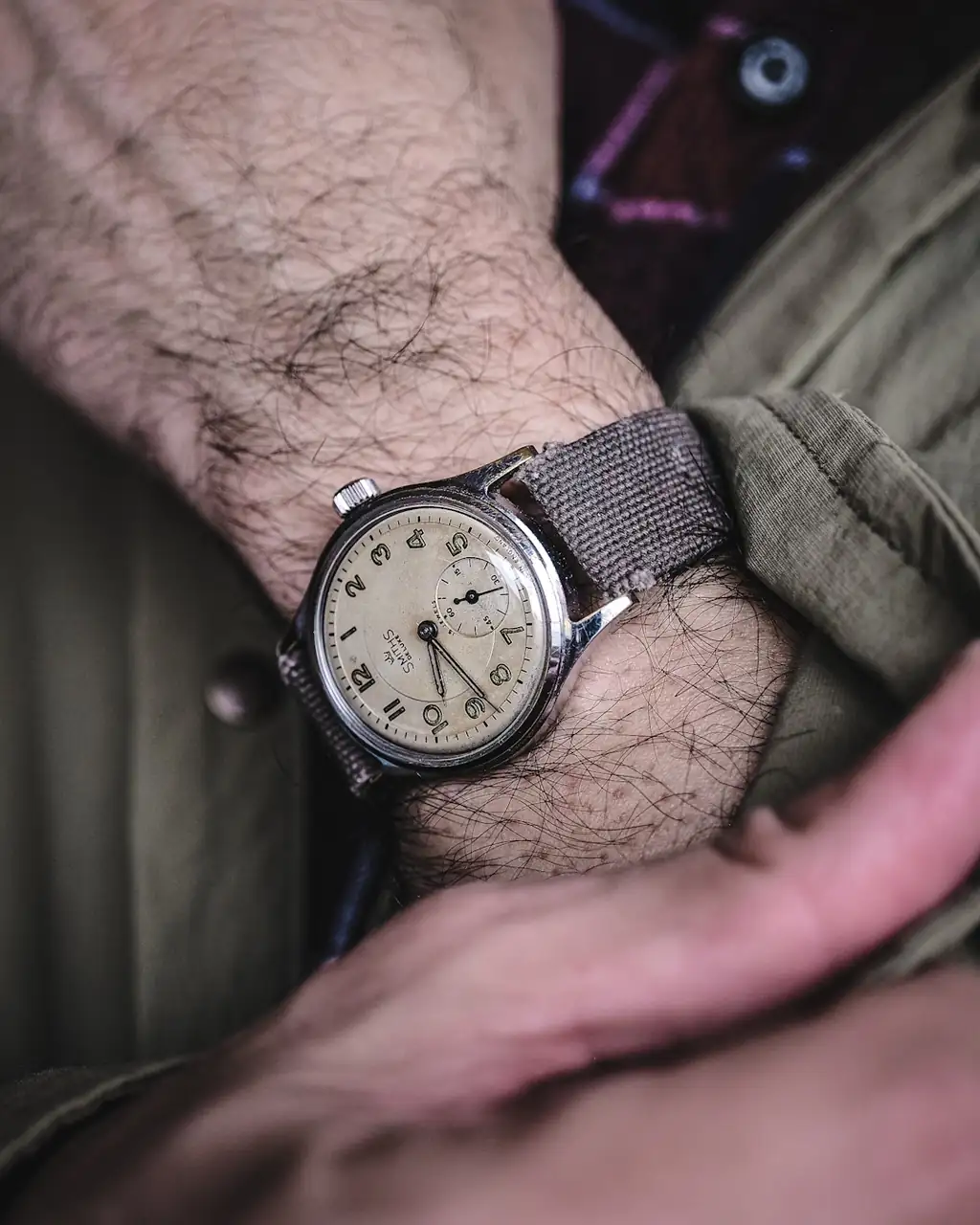 No había hecho nunca correas antes y esta es una de sus primeras correas. La ha hecho para mí Smiths, con una tela antigua de la misma época que el reloj. Os podéis imaginar mi ilusión y el valor que tiene. Me la ha mandado desde Inglaterra.