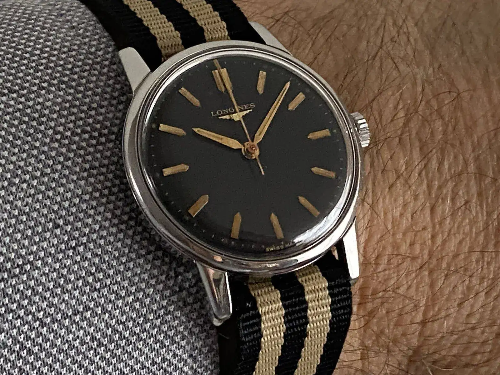 Hoy llevo un mecánico de cuerda no moderno sino antiguo o clásico: un Longines de 1961, con el aclamado calibre 30LS (segundero central).