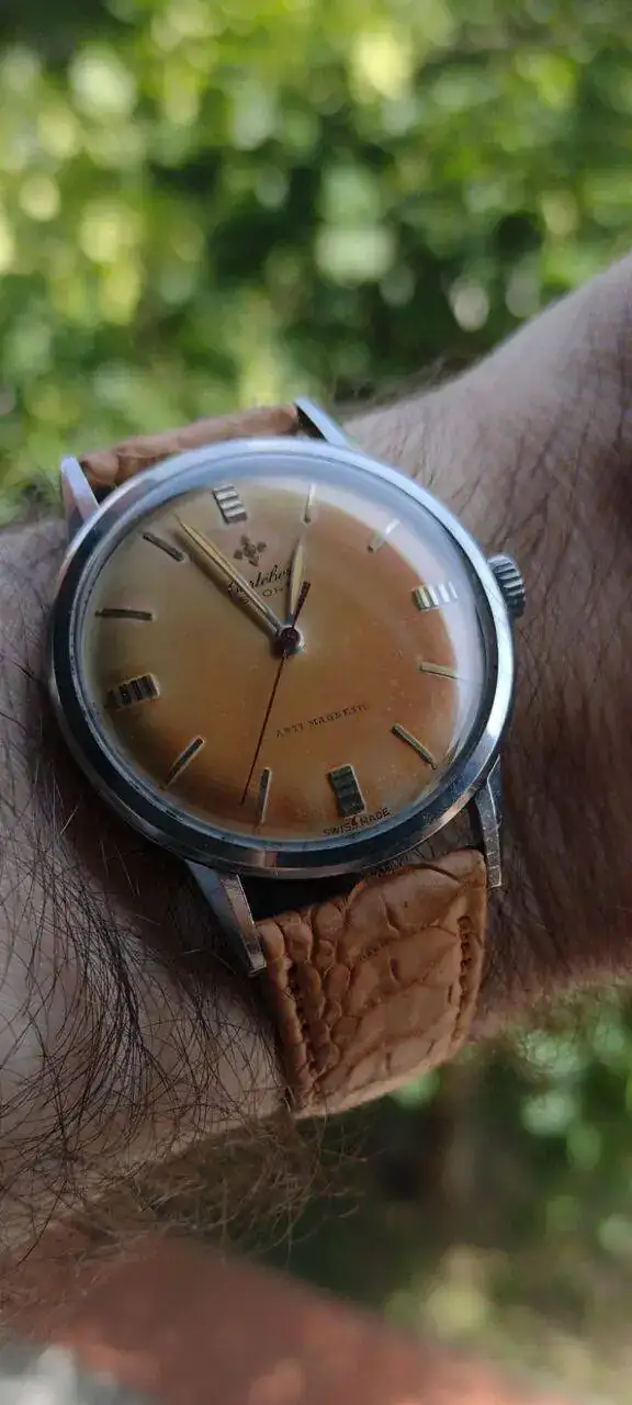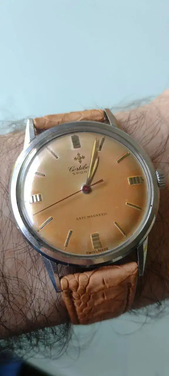 Pues me estrenó en este hilo de mi amigo Gastonet con mi favorito, no podia ser otro que un Cortebert con calibre 697 de los 50 y caja de acero, poco comun.