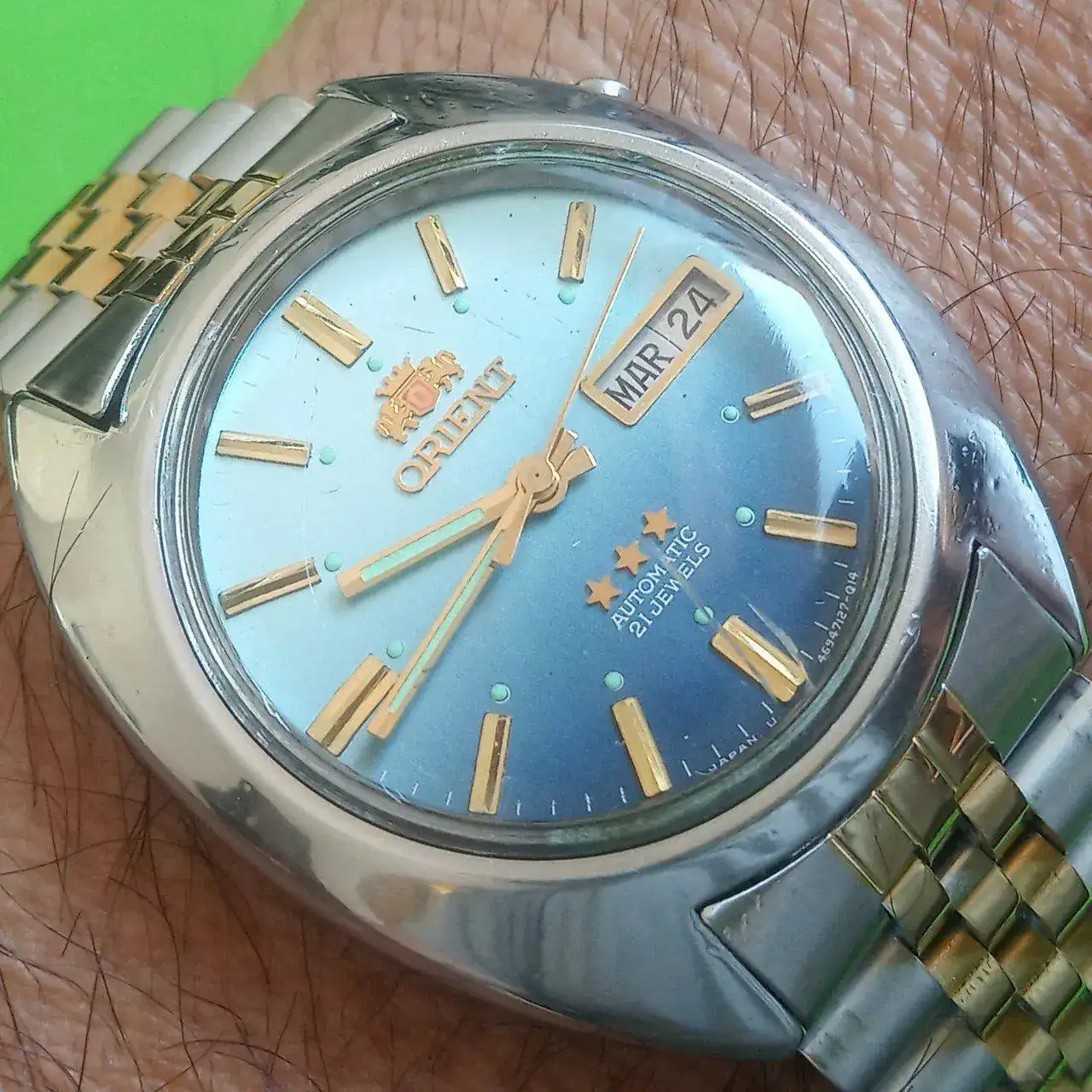 Un Orient tres estrellas de primera serie, el del botón para cambiar el dia de la semana.