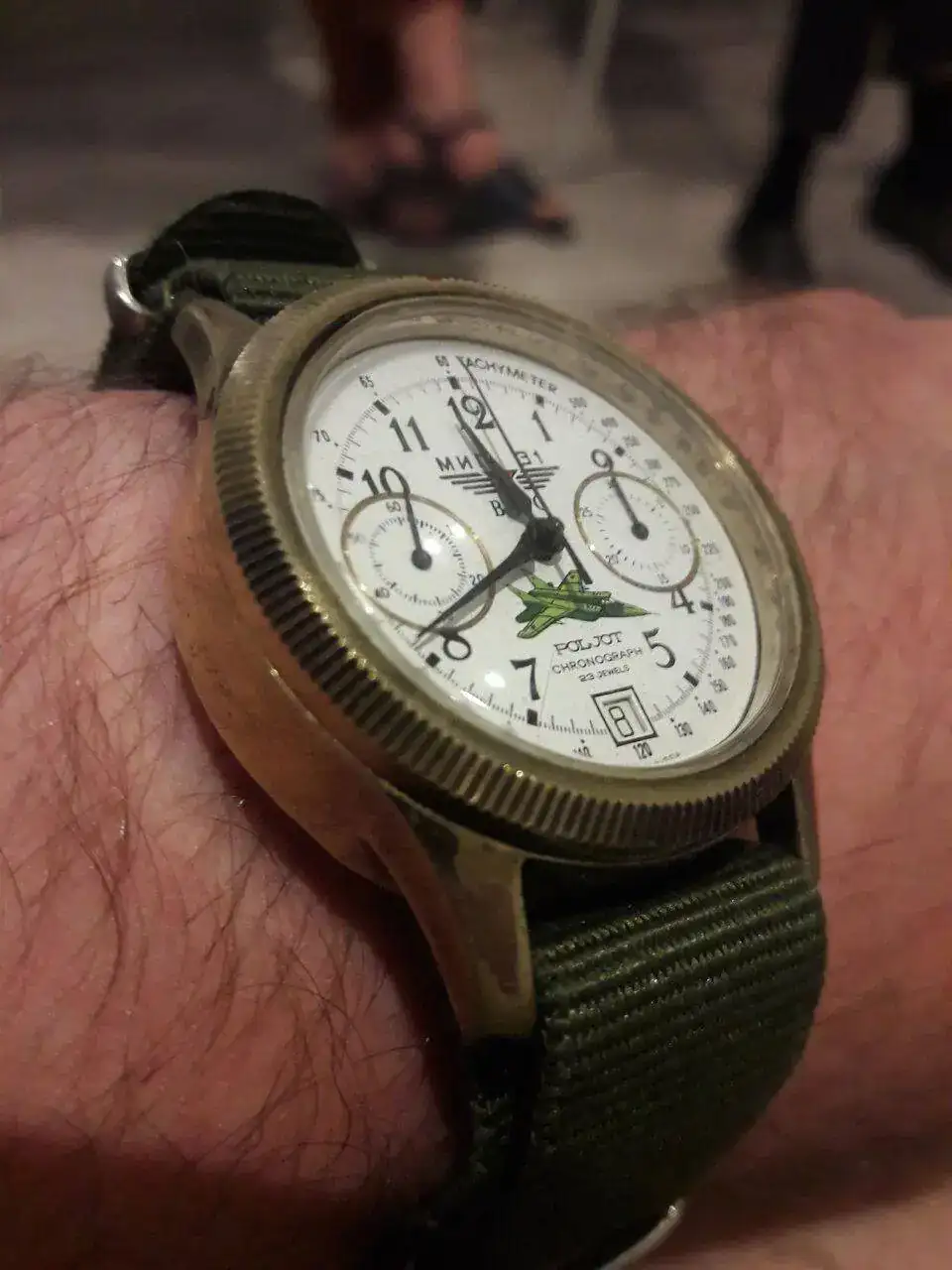 Gracias, David. Por suerte, esta versión del modelo es inmediatamente posterior a que dejasen de usar radio en las esferas. De lo contrario, tendría unos niveles de radiación alarmantes, como dices.Tremendisimo soviético. Tiene que reventar el contador geiger, no?