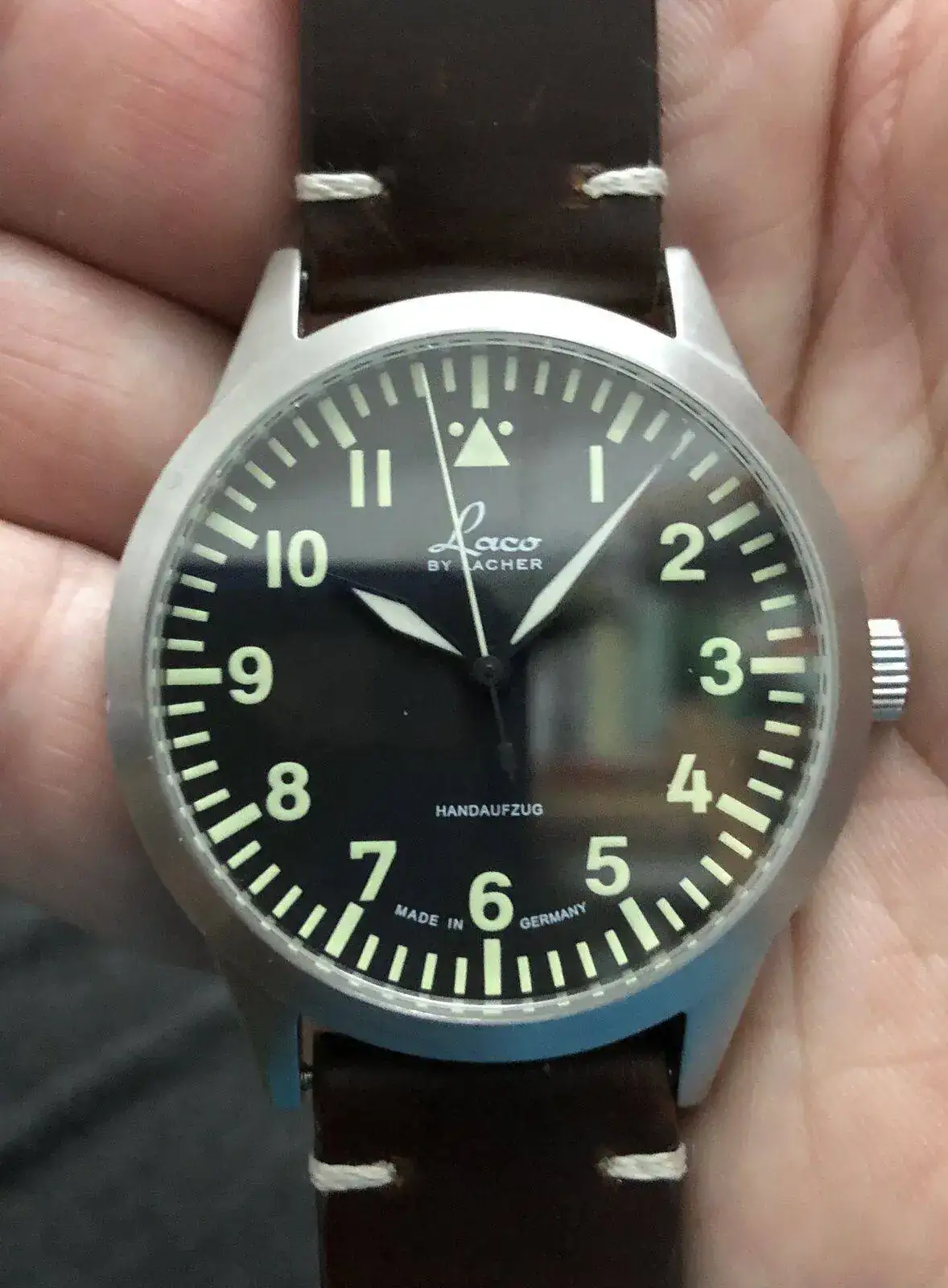Muy guapo y a la vez original ese flieger compañero, original sobre todo por el espacio que deja en la caja ese 2660.Laco con calibre manual ETA 2660, un calibre ciertamente pequeño que solía usarse en relojes de dama. Eta y manual, para un Laco lo prefiero mil veces a miyota automático, sin desmerecer en absoluto los miyi.