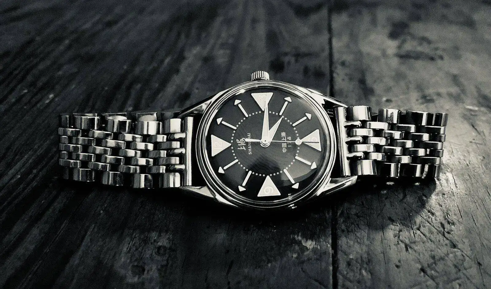 Es muy difícil fotografiarlo por los reflejos, y el color puede parecer a veces que es gris o negro, pero no: es azul profundo con agujas e índices dorados.