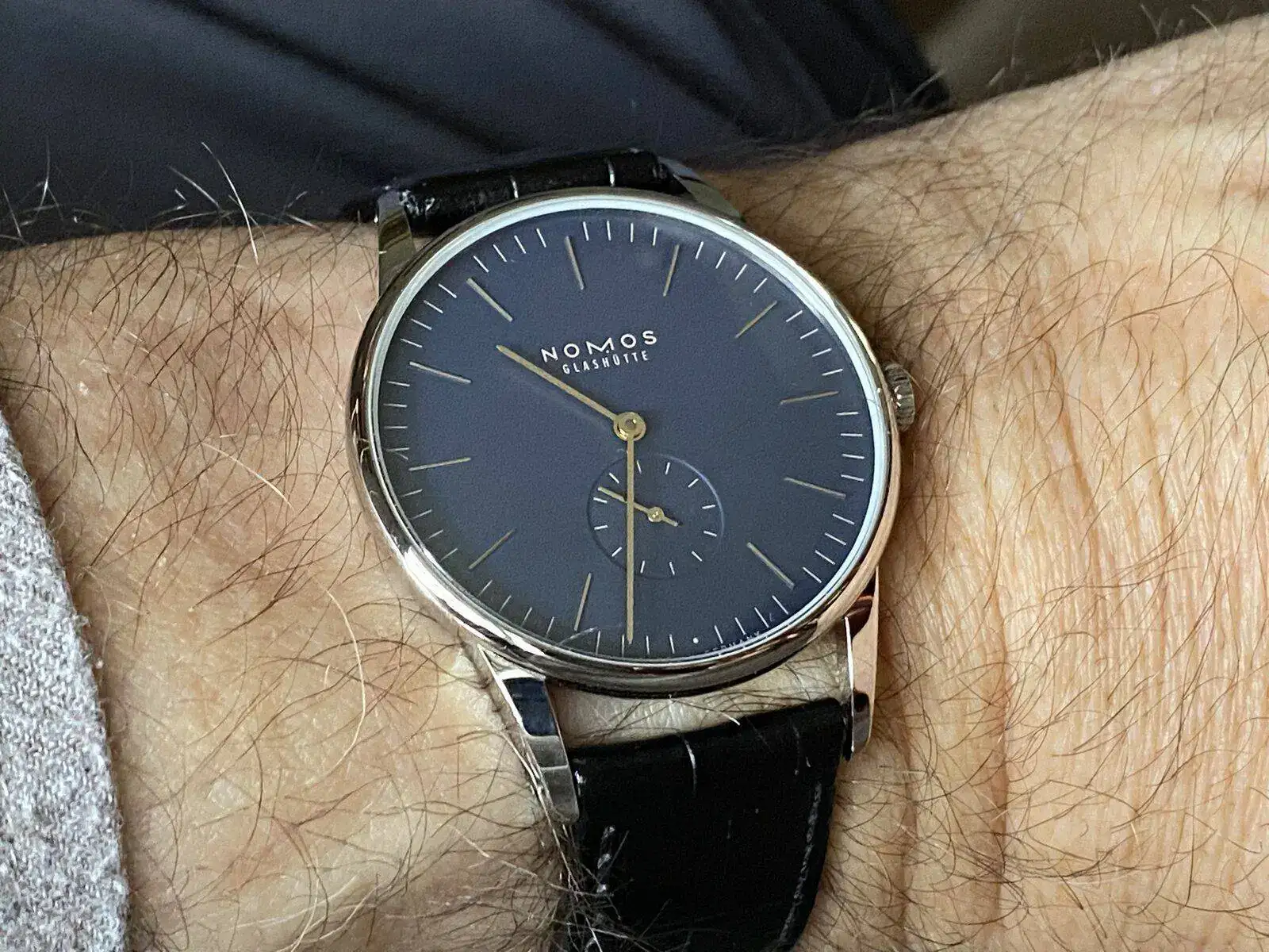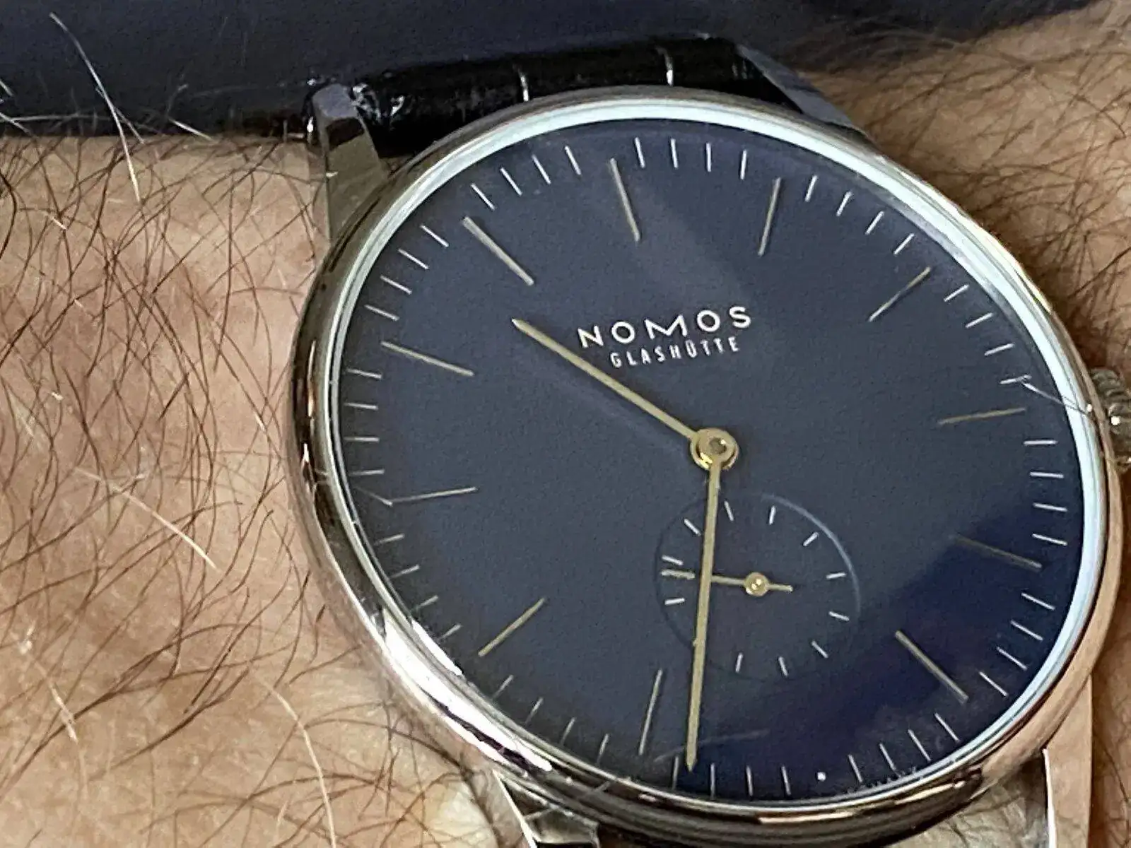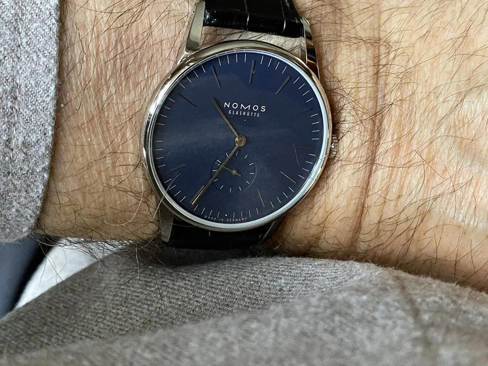 El de cuerda de hoy es moderno, un Nomos Orion 38 azul medianoche.