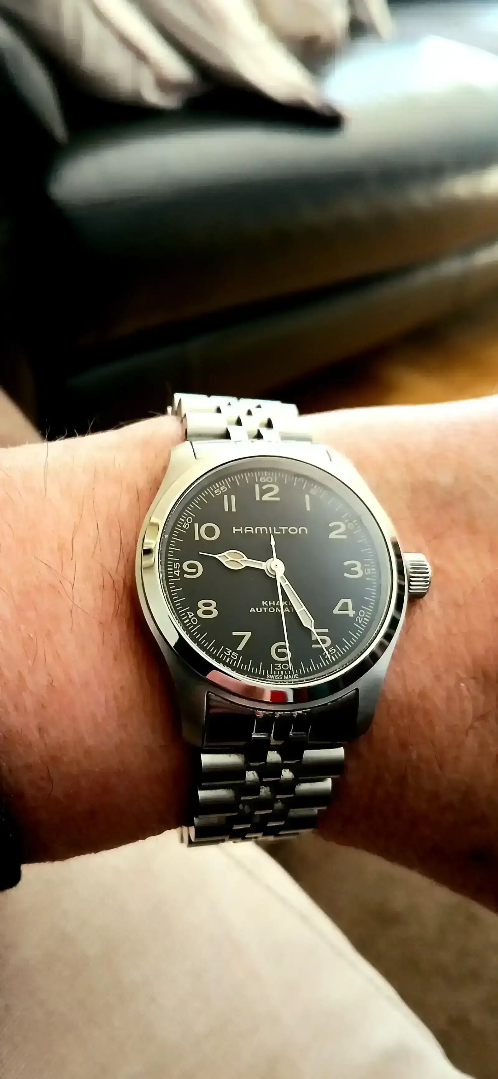 A veces hay lío con lo de "field" (campo). La expresión "reloj de campo" no significa reloj para ir al campo, monte, de andada... Lo de "in de field" es como cuando se dice "trabajo de campo" (en oposición a de despacho), sencillamente significa estar en acción, en misión, "ahí fuera". Así que los relojes militares (en especial si no estaban especializados en aviación o buceo) son los field watches. Un ejemplo clásico es el Hamilton Khaki, siempre fue (no exclusivo de Hamilton) un reloj cien por cien de origen militar (derivado del A-17 de los 50 y hermanos y del A-11 de la 2GM y hermanos). Digo hermanos porque la línea en esas épocas de reloj de propósito general para el ejército y reloj de aviación a veces era finísima: en el caso del que hoy es el Khaki la versión aviación tenía parada de segundero y la de tierra no, eran el mismo reloj.