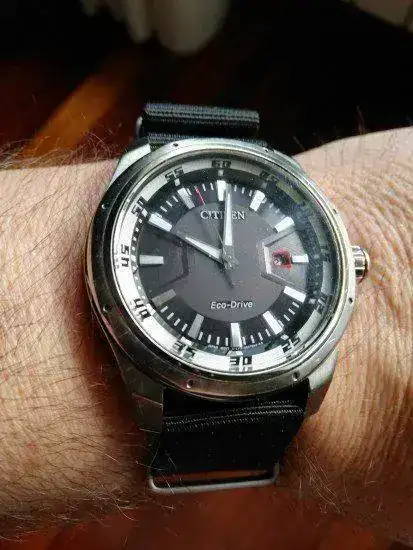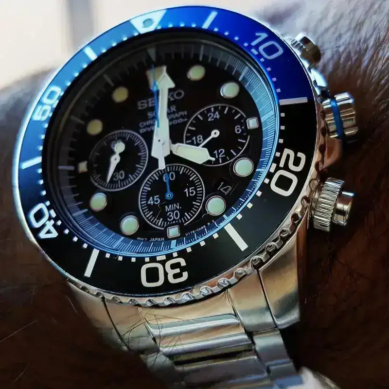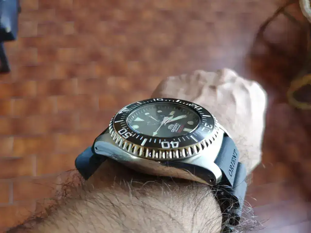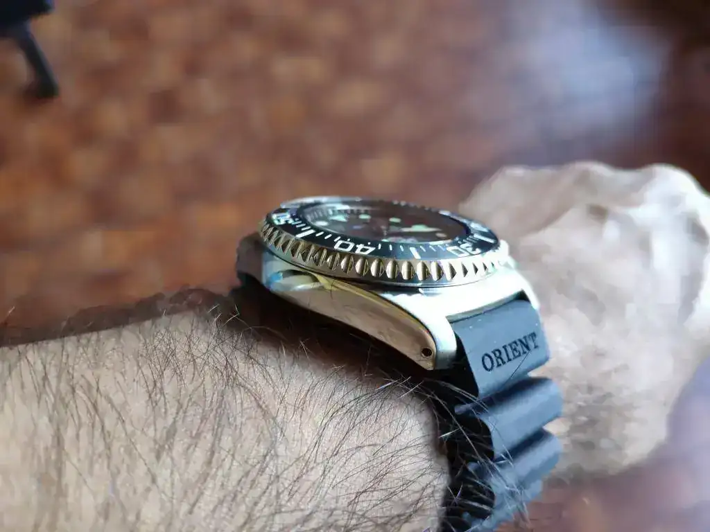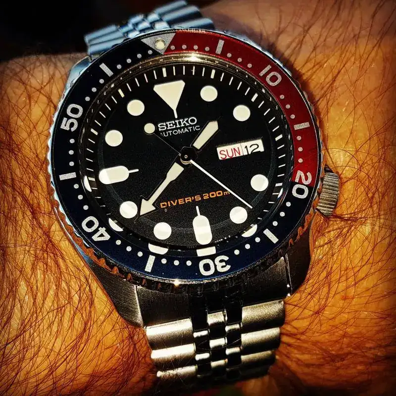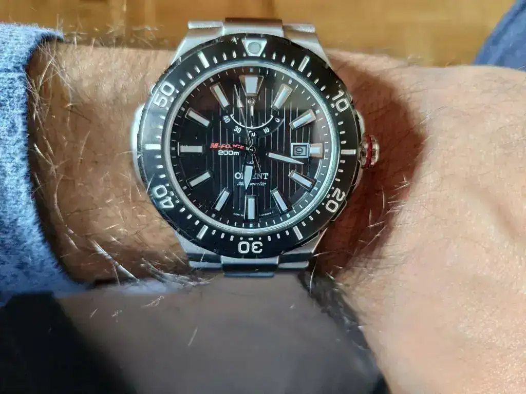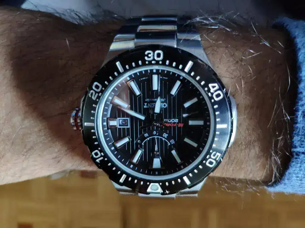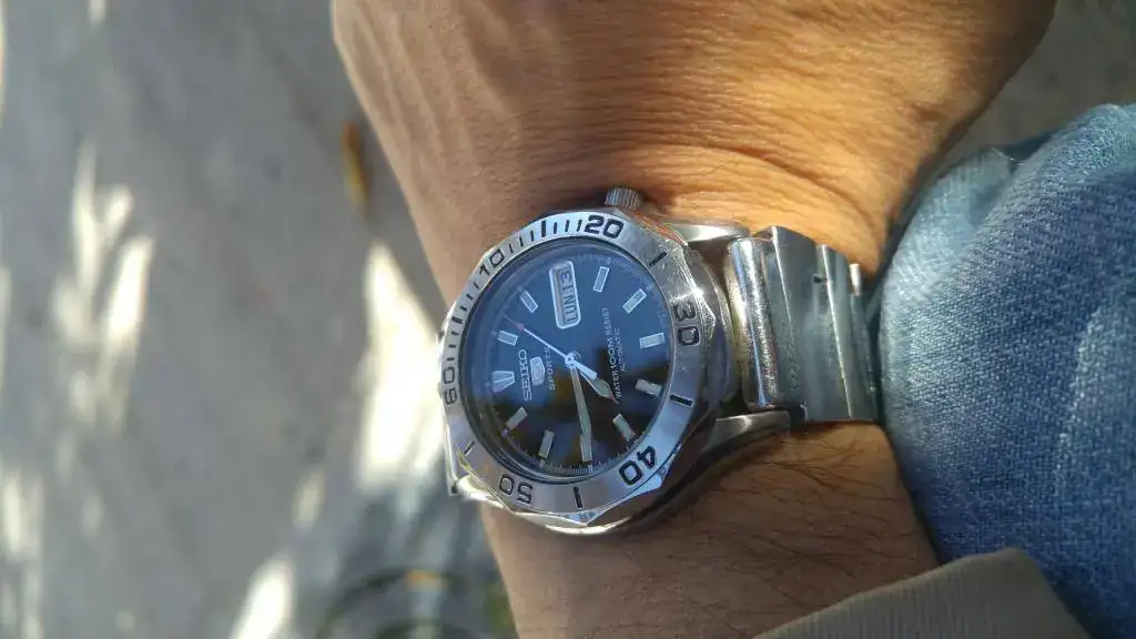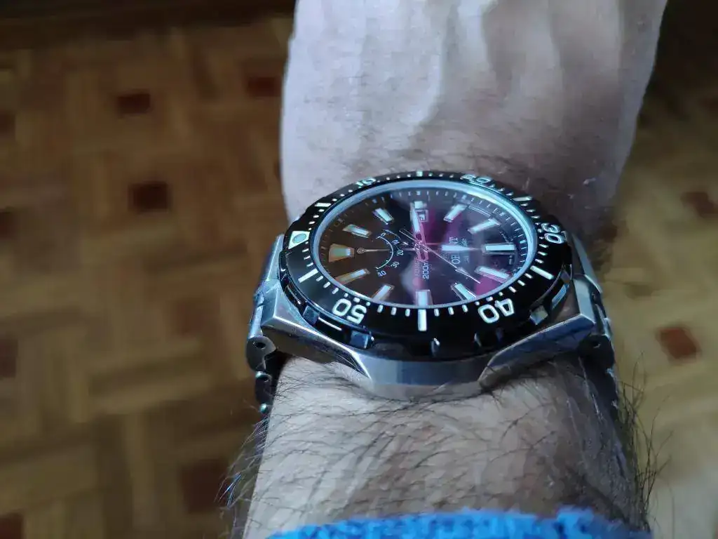 El primer reloj comprado por mi con dinero ganado por mí. Tiene unos cuantos años y le he cambiado el cristal y el bisel hace poco. También se me rompió un endlink y me tocó adaptar uno de otro modelo.