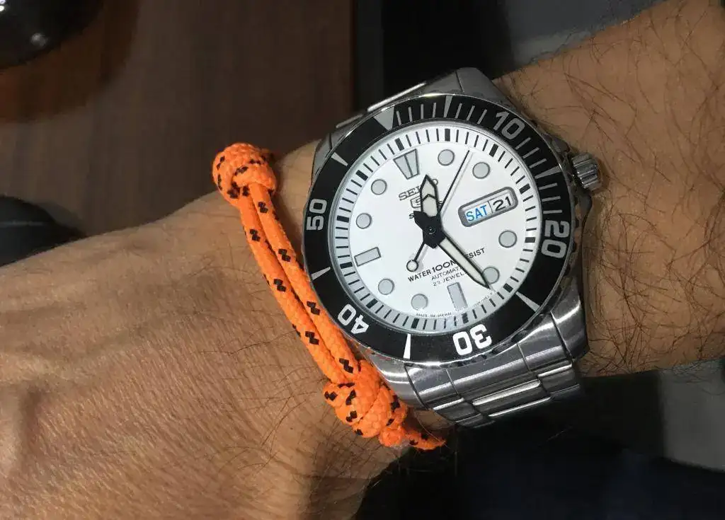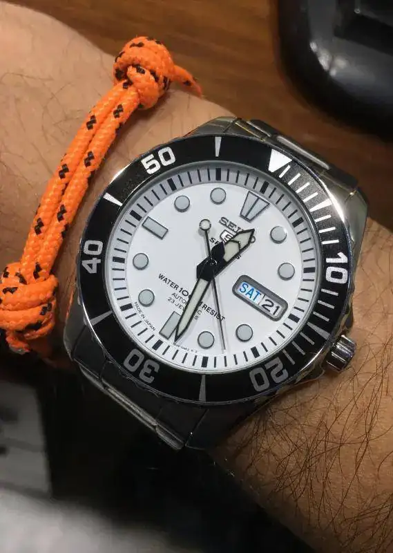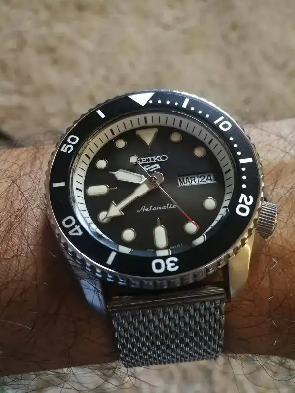 Aunque es un reloj actual, encuentro que en su diseño se han buscado unos aries de años 70 muy interesantes. De hecho, encuentro muchas coincidencias de diseño con el mítico Seiko 5 Sports 6119-6023 del año 1969. Ahora bien, este Lorus es de dimensiones según tendencias de tamaño actuales (43 mm sin contar la corona que está semioculta).