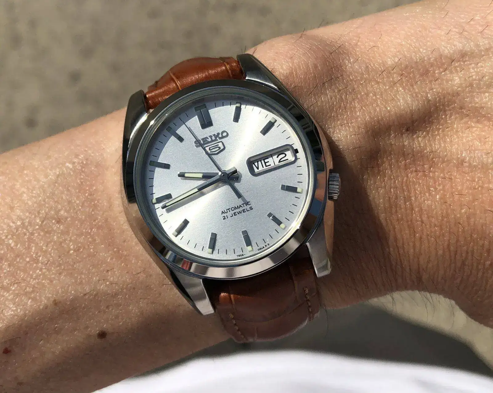 Y lo que me da más miedo es el 8200 que lleva dentro, sin remonte manual ni parada de segundero. Sinencambio, al ponerlo en hora, parece que responde al giro de la corona y carga el mecanismo (?), y si tocas con un poco de cariño la corona el segundero se detiene, así que soy razonablemente feliz.