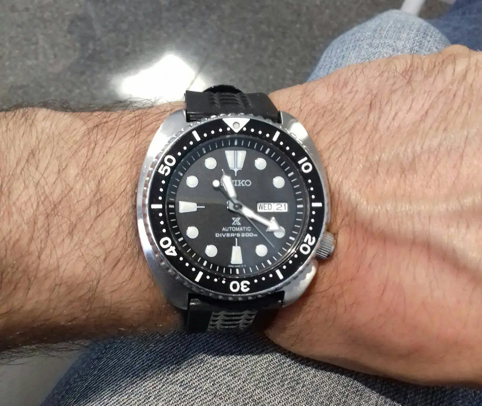Mi tortuga con un caucho chocolate, rememorando el Seiko de Willard.