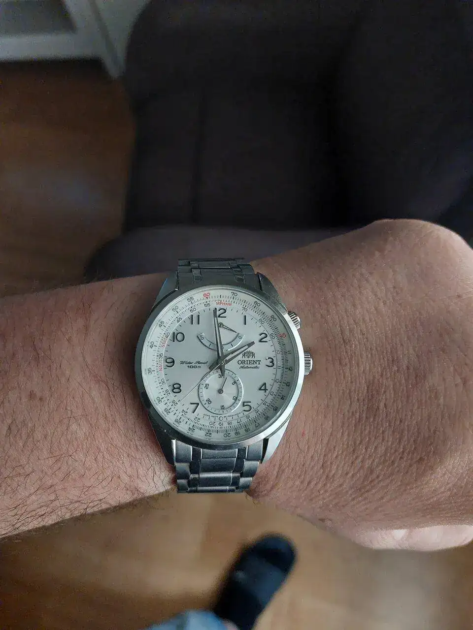Presento mi Orient calibre 46U40. Fue un regalo de mi mujer. Mi primer reloj automático y el germen de mi afición relojera. Me gustaría (soñar es gratis) comprar los demás relojes de este modelo pero con esferas de distinto color