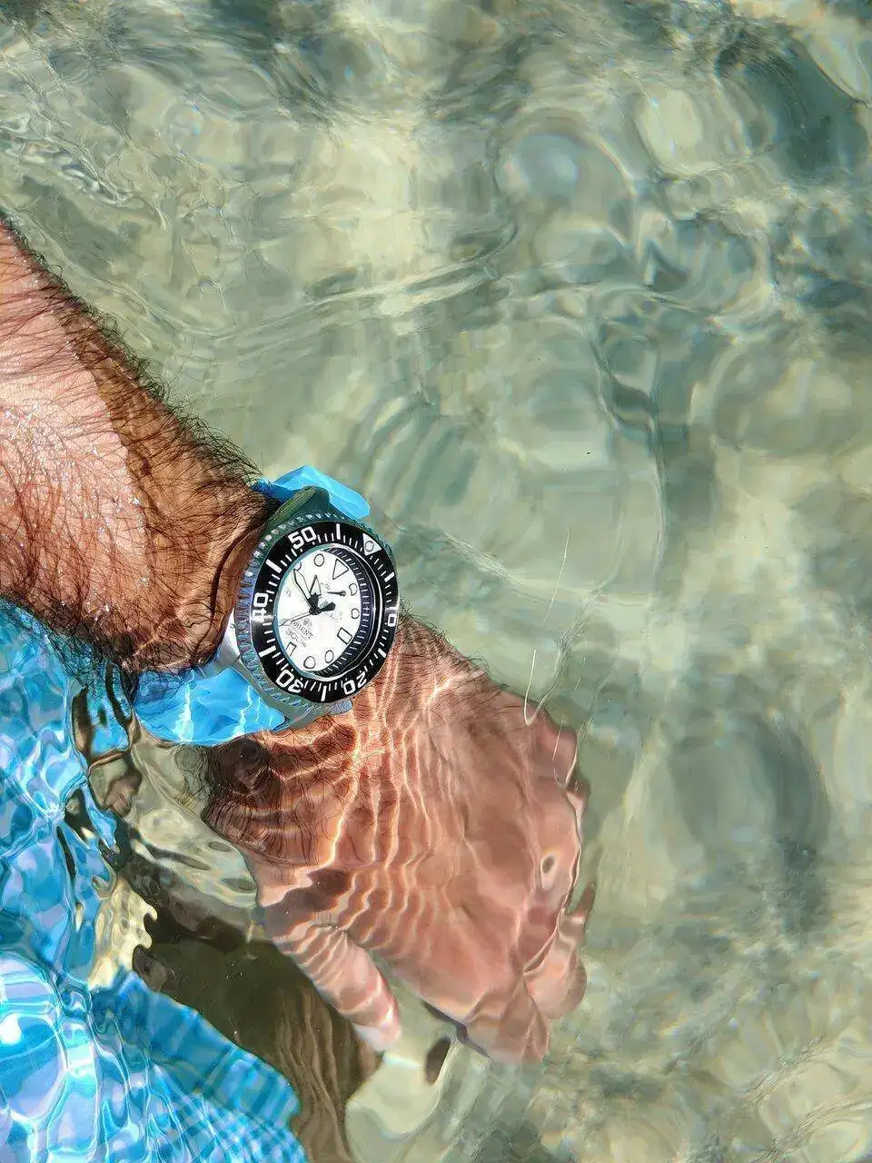 Se ve muy bonito el Pro Saturation en el agua, y esa correa le queda genial, muy veraniega.