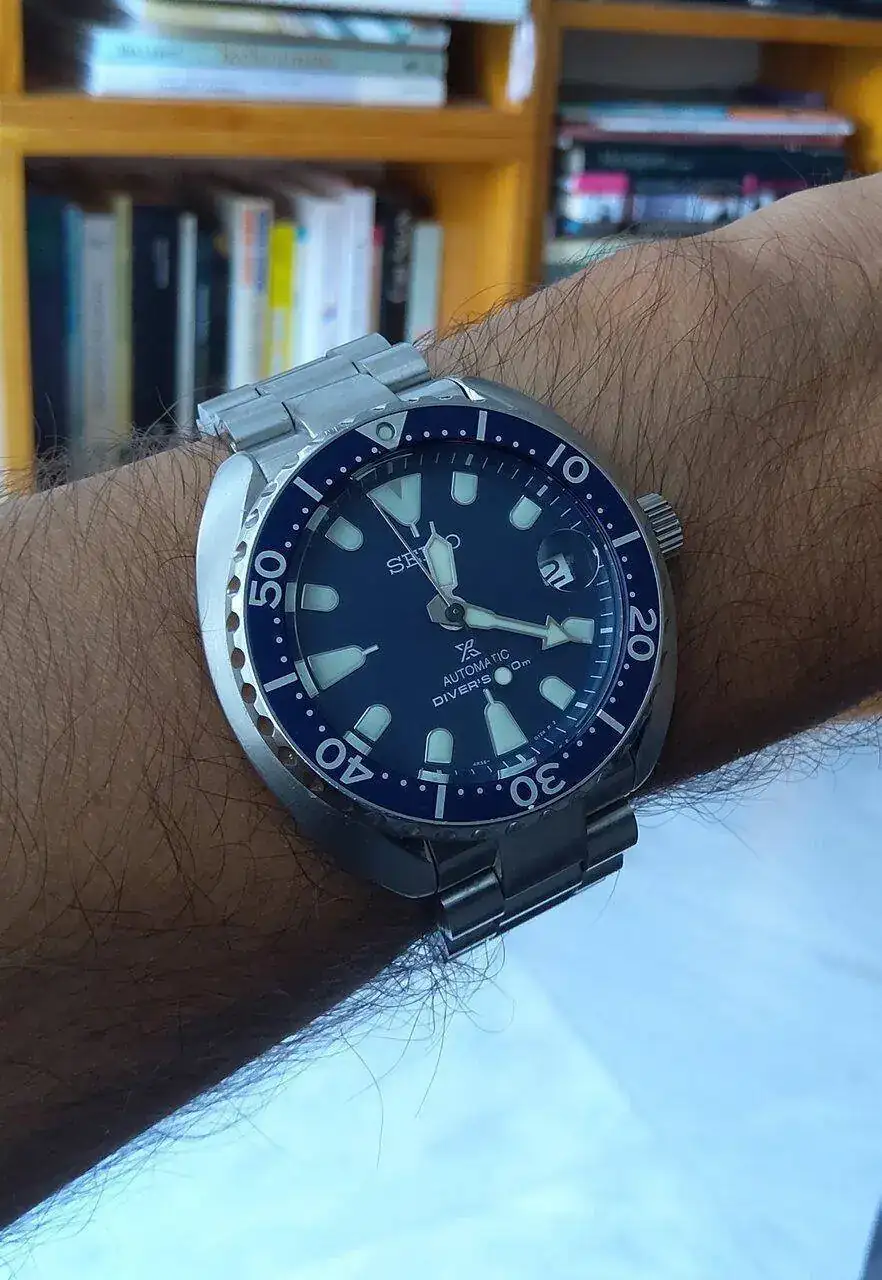 Sí que le queda bien, tiene muy buena pinta. Cuando le pones a un reloj tuyo una buena correa o un buen brazalete de calidad y bonito como ese, casi parece que estrenas reloj, me encanta esa sensación. La tortuguita lo merece, y seguro que muy cómodo.Compré esta correa de Strapcode y no veáis como ha ganado el tortuga mini.