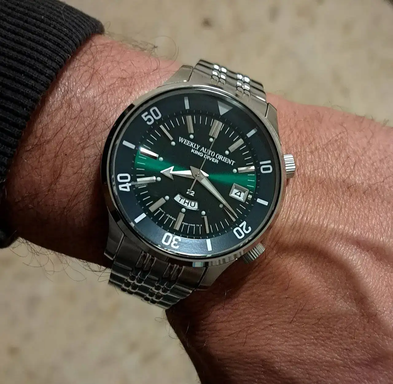 Un reloj diferente, herencia del pasado, con un color verde fabuloso y que no deja indiferente... Saludos !!Precioso y legendario Orient. Un placer!
