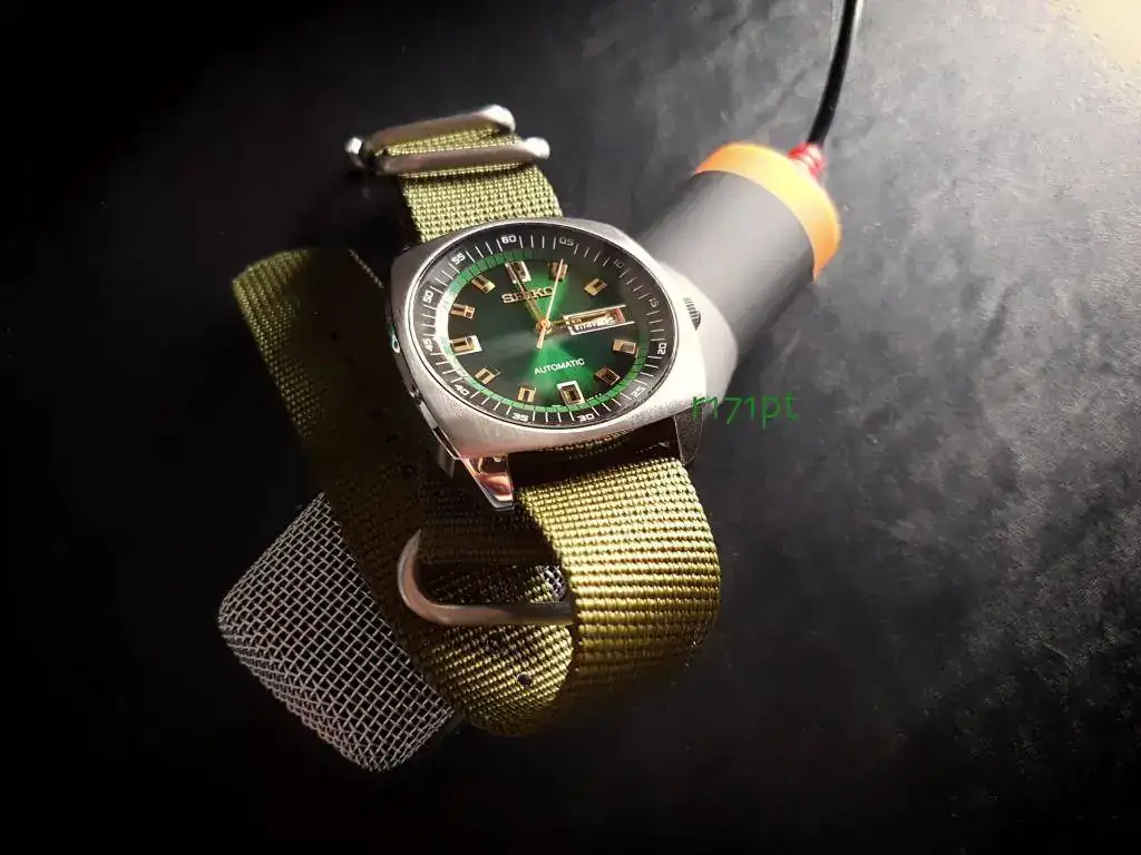 Probando un 007 con bisel dentado,insert estilo omega y una tropic original de los 70'...en mi opinión el conjunto queda muy bien....espero que os guste