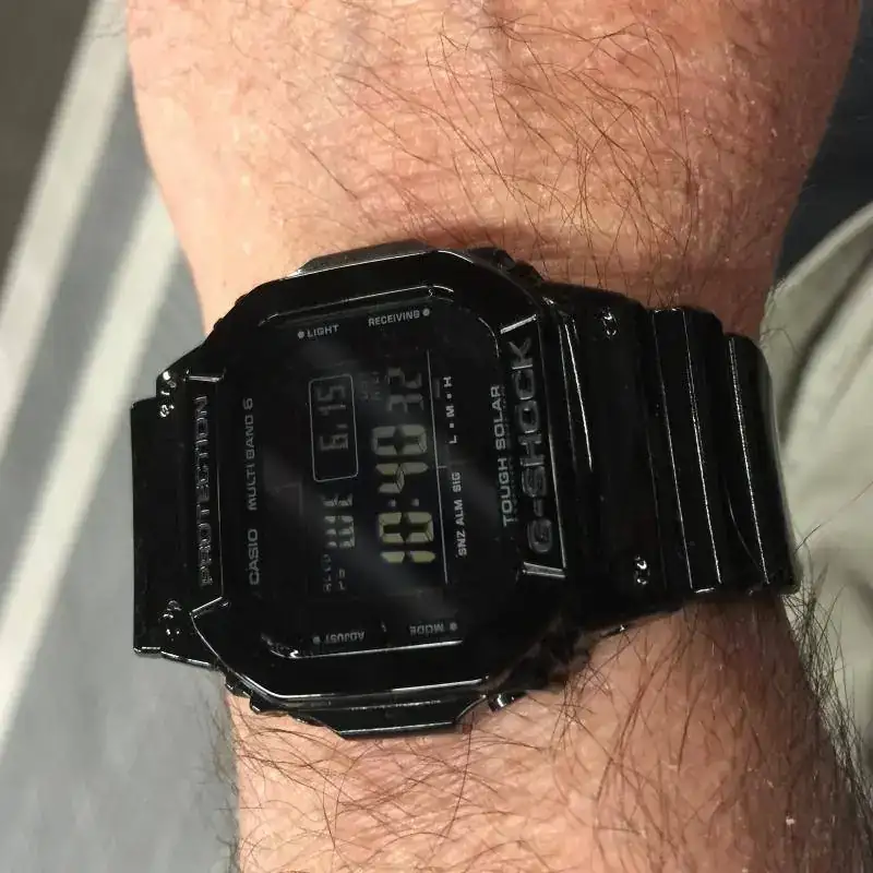 Hola, aquí un g-shock radiocontrolado de carga de energía solar, se ilumina solito cuando la luz ambiental no es suficiente, el cambio de horario lo hace también el solito, se sincroniza religiosamente cada noche a las tres, pesa menos de cincuenta gramos, es 200 metros, no discute, es hincha del barsa, le gusta la música clásica, los perros...y no le huelen los pies