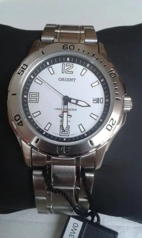 El Orient FWE00003W, uno de los pocos cuarzo-solar de orient, 200 w.p. y corona roscada.