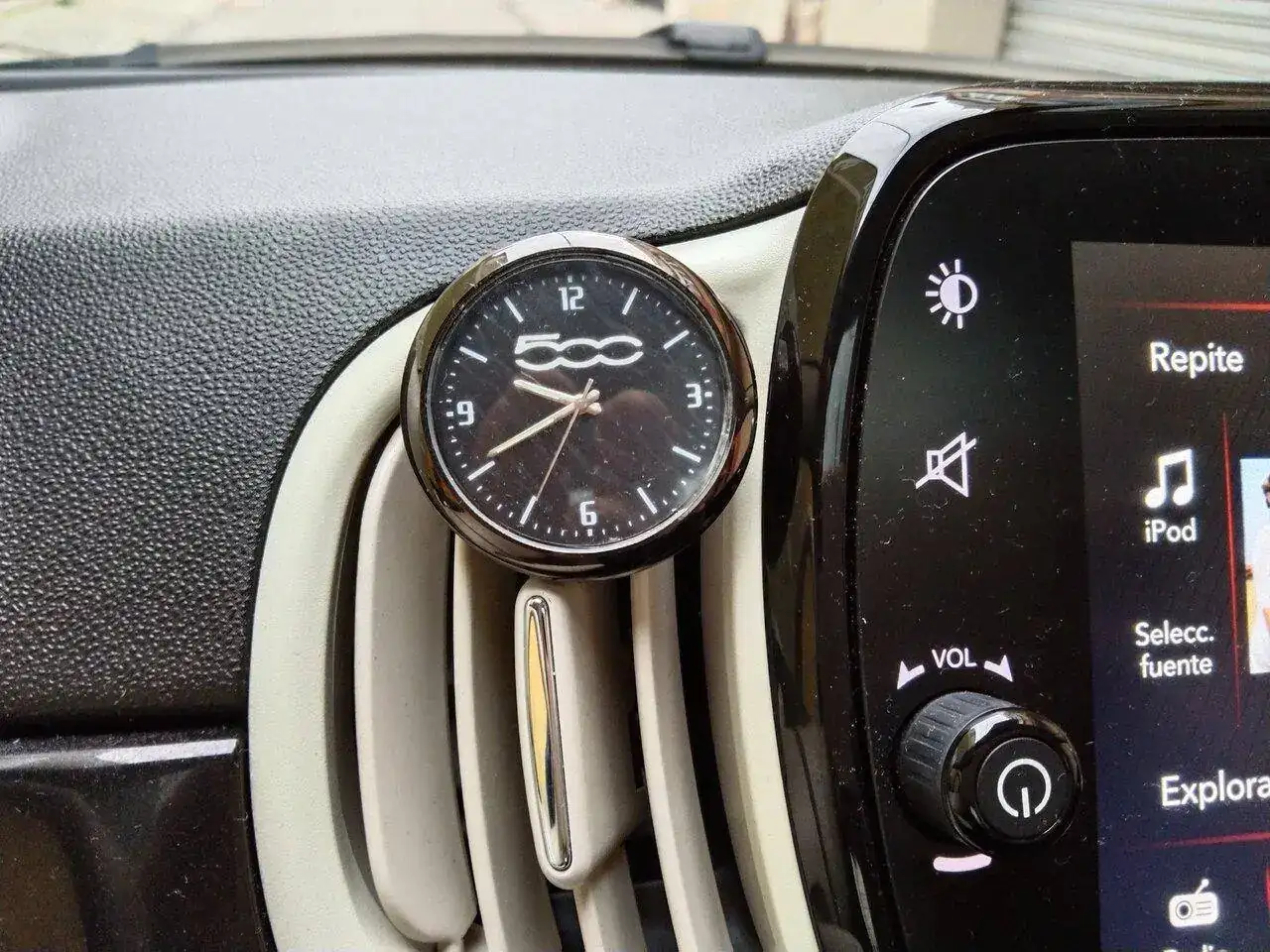 😂 está en plan “ambientador” pero muy chulo, parece original 👌Mi automóvil lleva dos relojes, el digital en el cuenta quilómetros y un analógico de 5€ adquirido en Aliexpress. En la foto, veréis porque lo adquirí![]()
