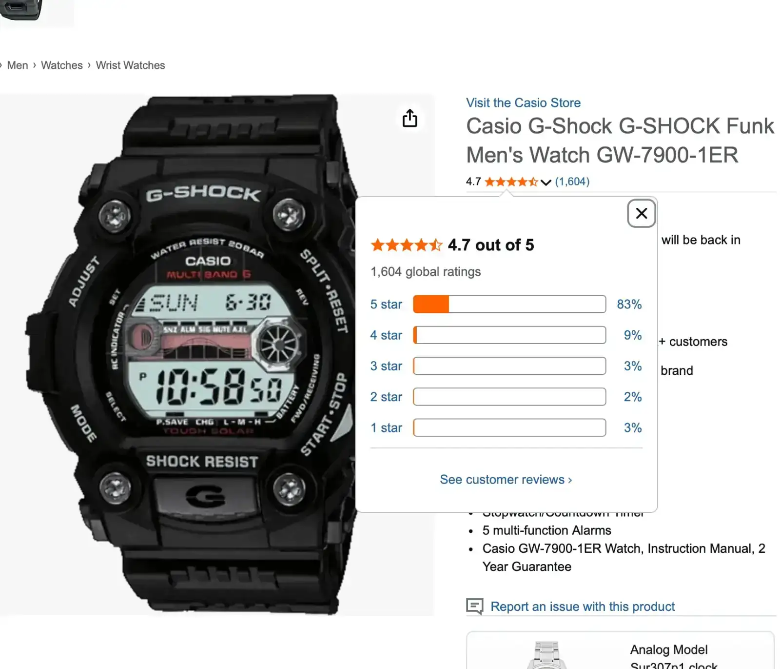 El Casio GW-7900-1ER creo que es misión imposible conseguir en tienda o a estrenar. Simplemente porque entiendo que es el equivalente de este modelo GW-7900B-1ER(este modelo resulta complejo visualizar la hora) pero con los números en positivo.