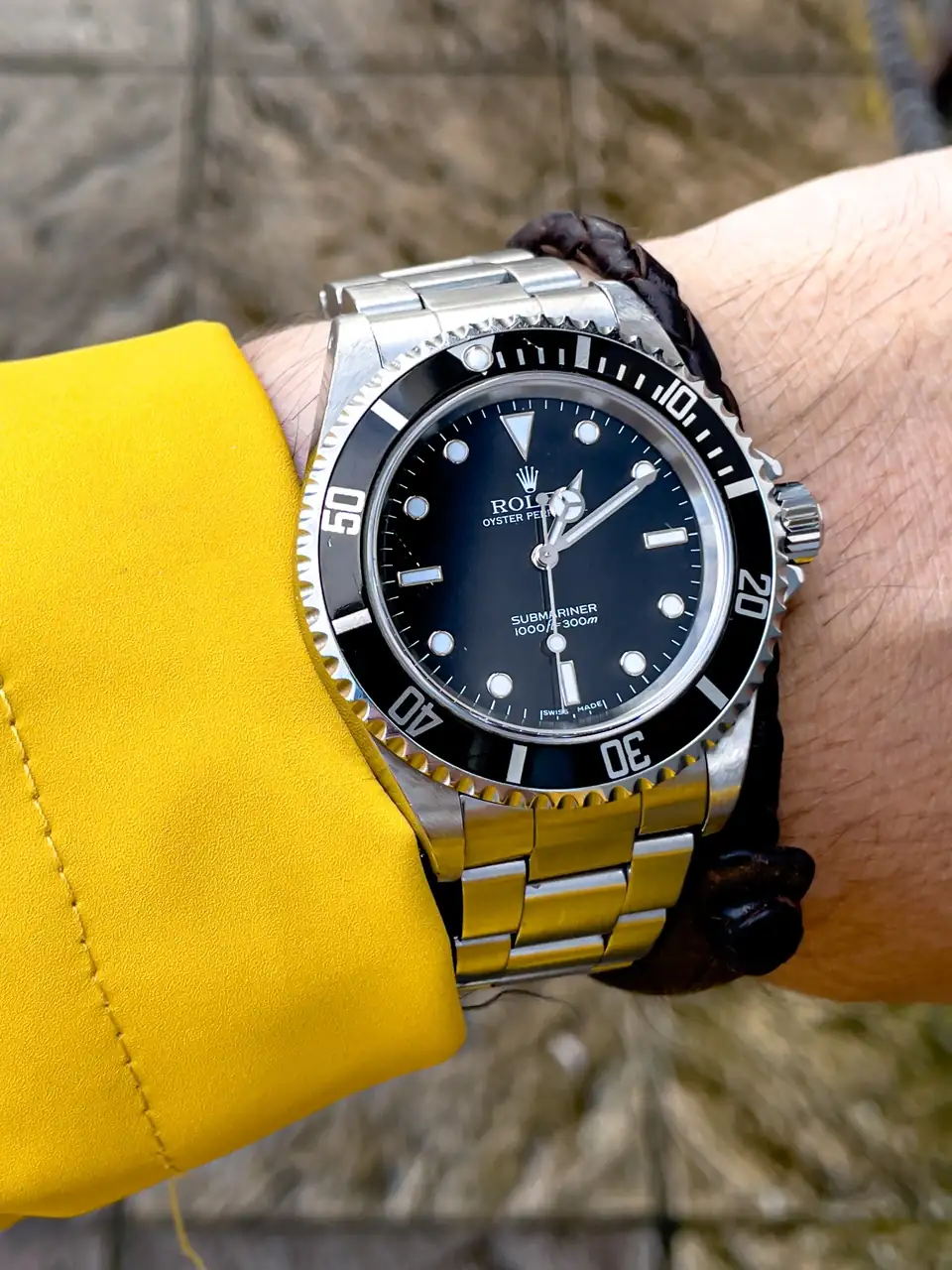 Llevaba años y años buscando un 14060m 2 lineas y muy especificamente de un unico dueño, sin pulir, full set, nacional.... y en este caso muy poco uso al ser de un marino que se pasaba en la mar 10 meses al año (y lo dejaba en casa). Pocos en estas condiciones en chrono y todos por las nubes.... no pude decir que no y fui a buscarselo a casa en octubre. Estoy deseando que vuelva