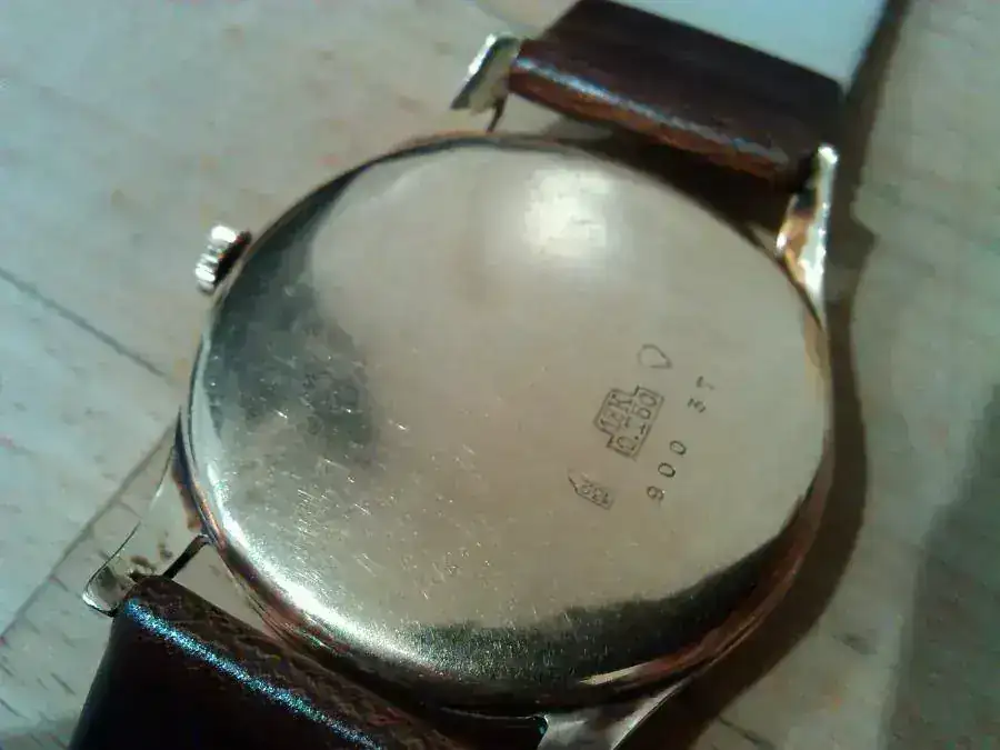 Since 1934, all precious metal watch cases made or imported into Switzerland must carry a responsibility mark or poinçon de maître to easily identify the case maker and won't be found on buckles or bracelets.