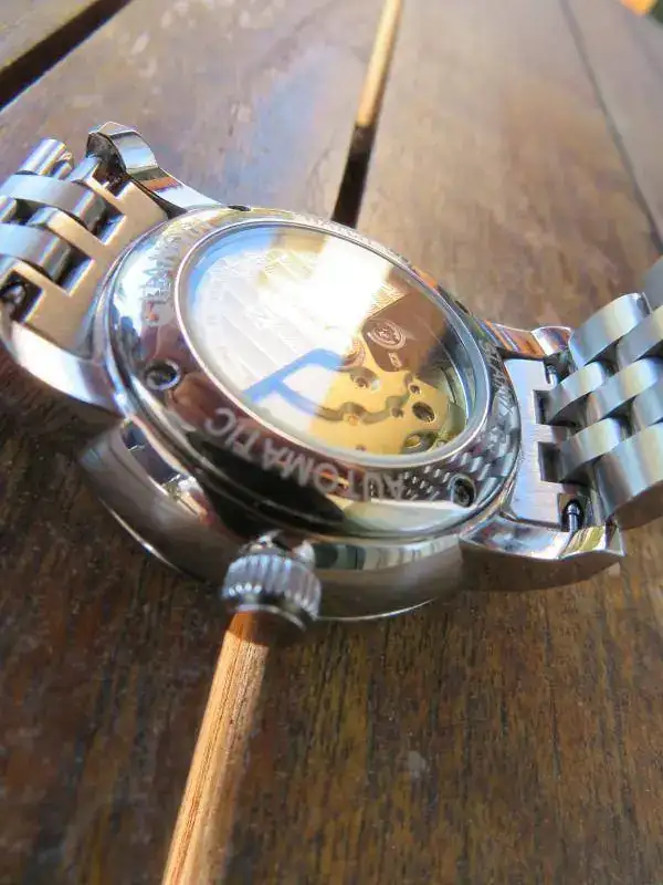 Dos de ellos (el de la izquierda y el de la derecha) tienen movimiento NH36A con parada de segundero y remonte manual. Los míos son precisos en la línea de los Seiko y Orient que tengo. Sobre la inscripción "zafiro" del que está en el centro de la foto tengo muchas dudas y aún no he logrado averiguar si lleva un movimiento propio o de algún otro fabricante. Los tres tienen movimiento visto. Las correas de "piel", en fin, lo típico en estos casos pero dan el pego con sus deployantes de mariposa. Las agujas horaria y minutera tienen un lumen muy pobre; para mí se lo podían haber ahorrado.