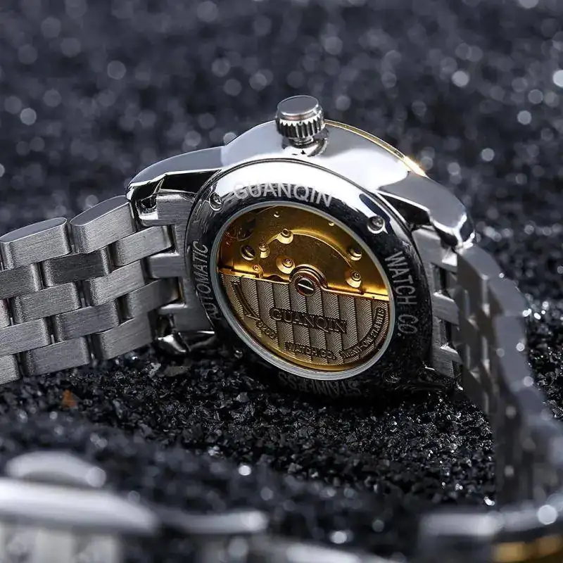 Guanqin mecánico automático hombres reloj de acero de tungsteno luminoso relojes fecha Calendarios movimiento japonés reloj con correa de cuero