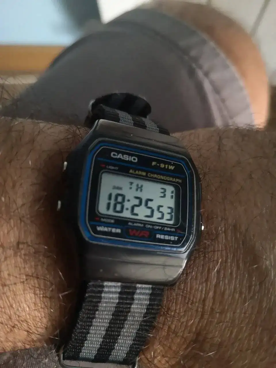 Yo uno de mis F91w (tengo dos, soy asì de espléndido con los relojes 😂) lo llevo con una NATO negra lisa y no hay nada más cómodo. Es el que uso para salir a correr.