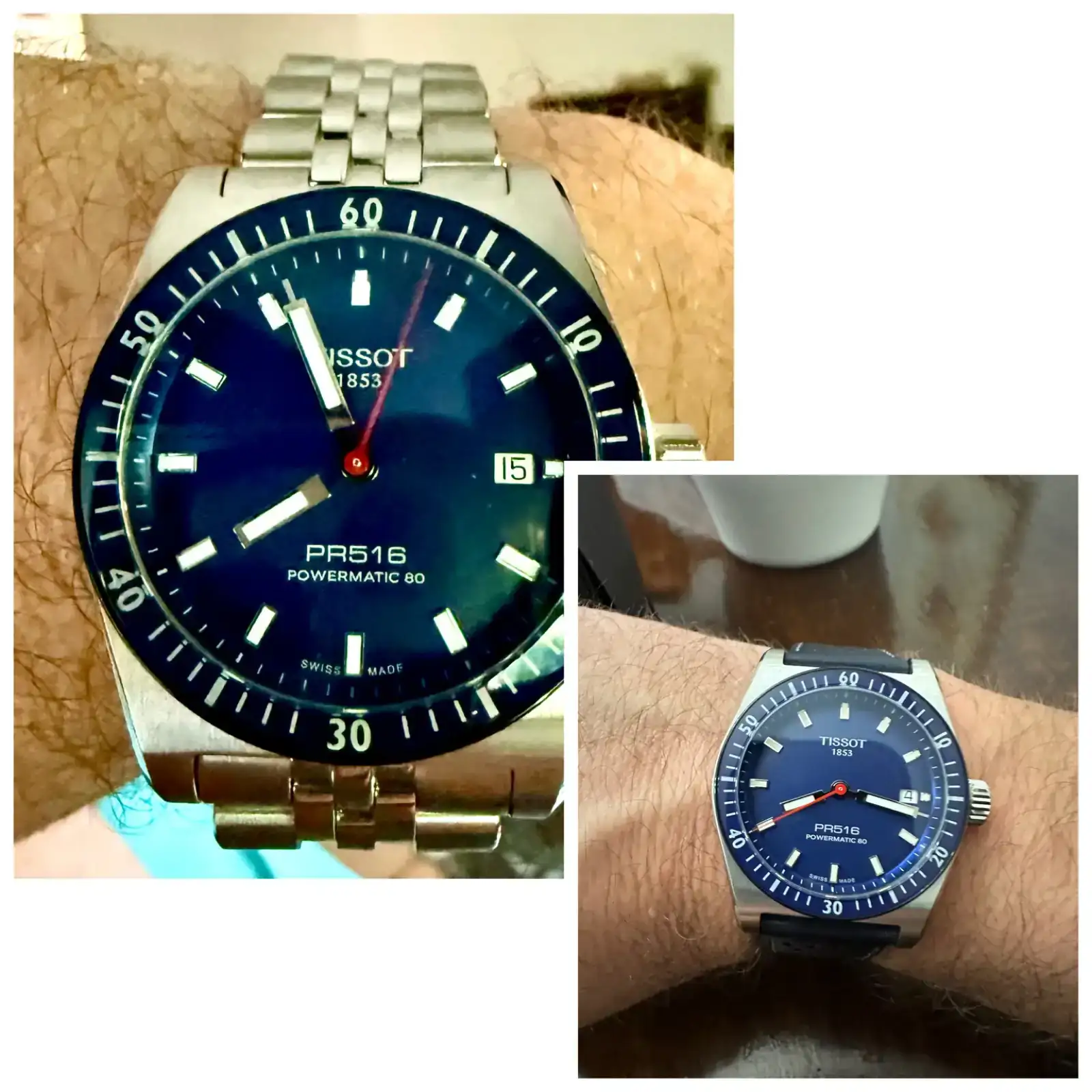 La cuestion es que ya tengo un Citizen Tsuyosa azul marino, y son relojes "parecidos", entonces entra a jugar otro tissot que me gusta, el PR516 con correa de cuero, dial negro y segundero amarillo (aunque es de 38mm y no sé si me parecerá pequeño puesto, tengo que probarmelo antes).