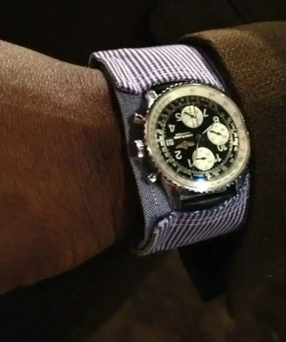 Sin comentarios.... Para no ofender, si no es un chiste, es cuanto menos "poco gusto"Hay quien se preocupa de que todo el mundo vea lo que lleva en la muñeca...