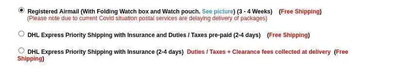 Has traído el reloj sin caja; por lo tanto, podemos declarar el artículo como "Devolución de reparación en garantía" a $ 48 para evitar impuestos y aranceles (si los hubiera).