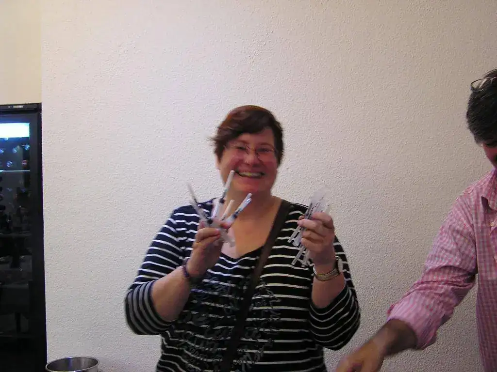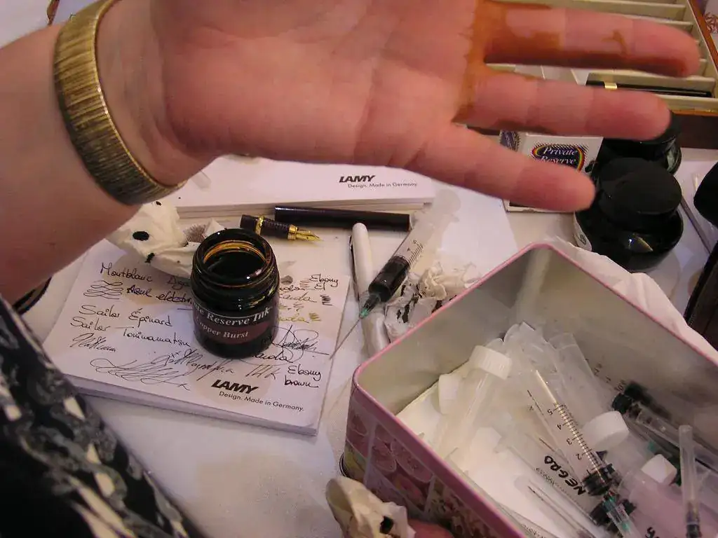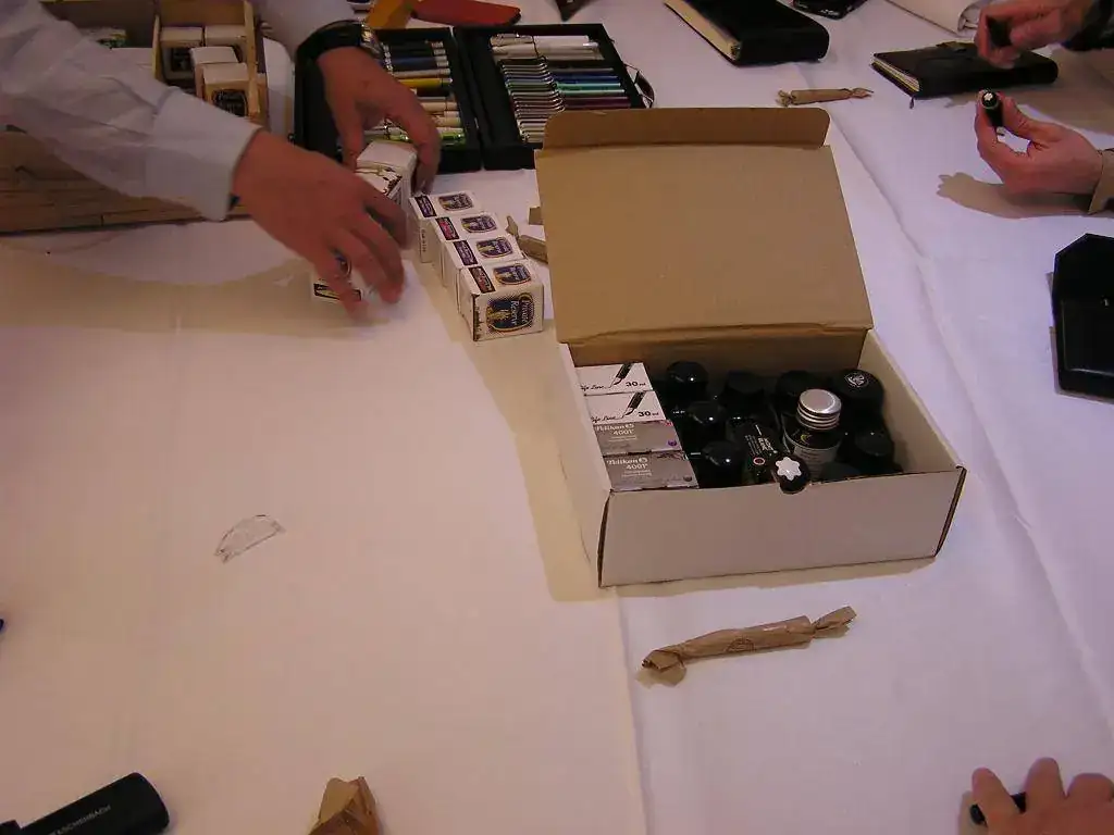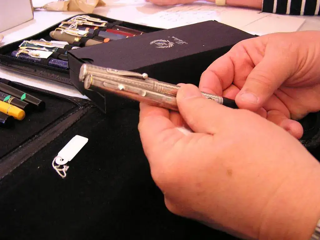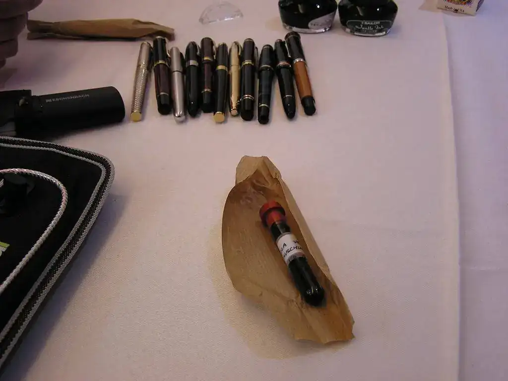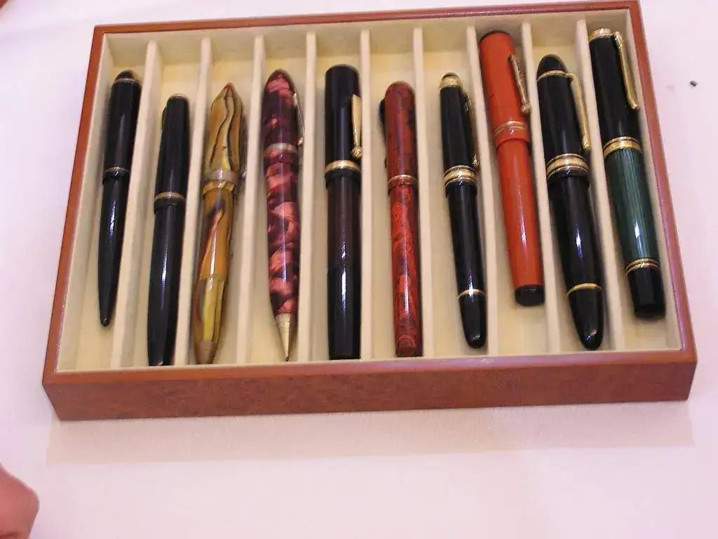 Pedro nos obsequió con fundas, que incluían una pluma, y tinteros, así como blocs de papel; Pepe, nos regaló unos viales de tintas y todos disfrutamos de la visión, el tacto y la escritura de piezas excelentes. Por ejemplo, Pedro nos enseñó y dejó probar unas Romillo fuera de serie (literalmente, plumas exclusivas), y salvo las mías que eran bastante normalitas, Ernesto, Mauricio, Pepe, Alfonso, Javier y Zaida compartieron piezas que sólo en estas reuniones se ven, al menos por mi parte. Veamos algunas fotos, sin comentarios: