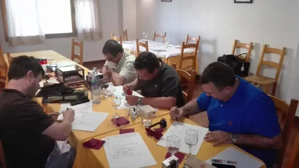 Manu (Nyolo) Joven aficionado que promete. En principio creo que se lo pasó pipa, y trajo un grupo de juveniles y refrescantes estilográficas.