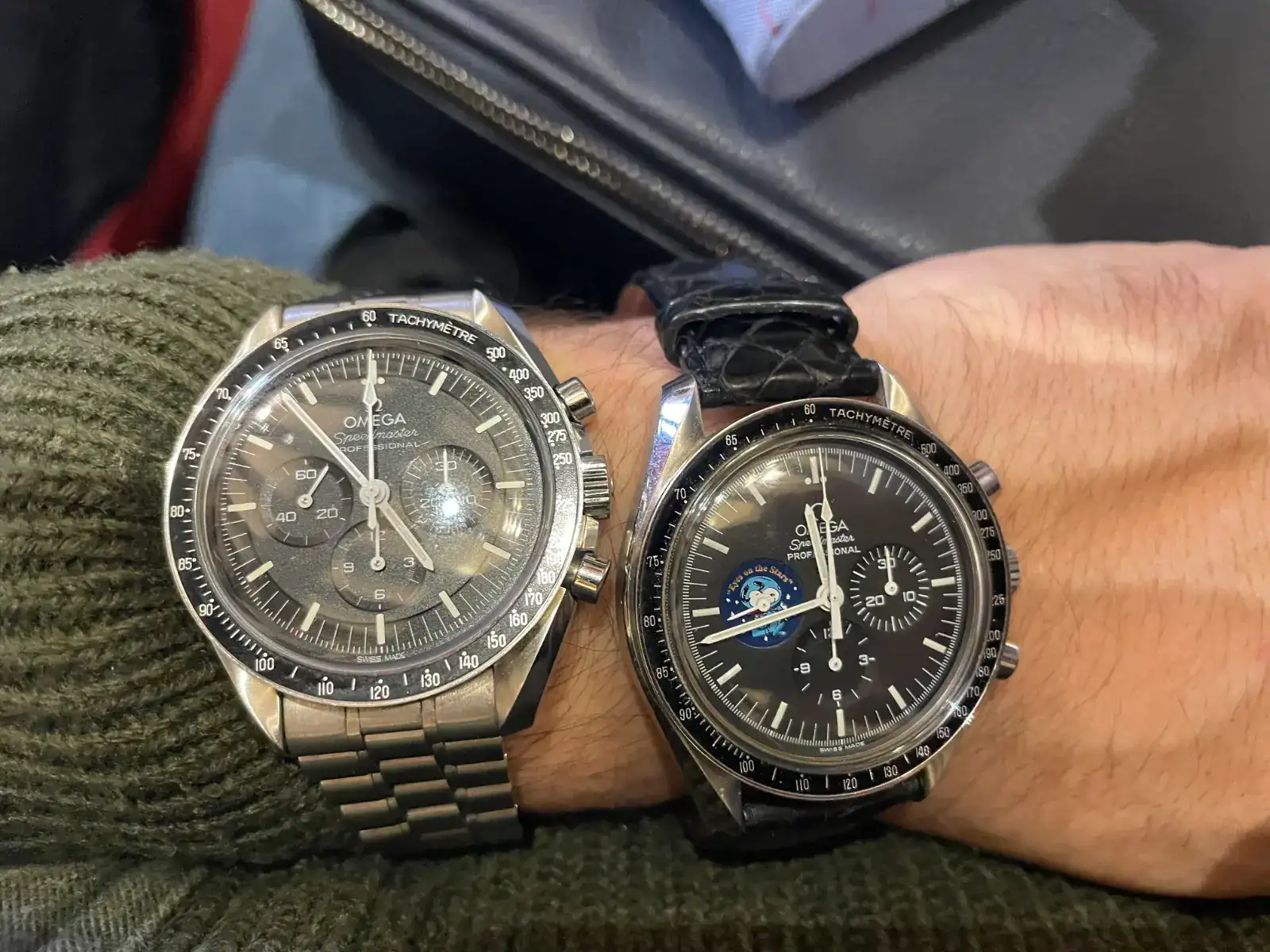 Por cierto, tras preguntar a muchos asistentes acerca de correas para mi Speedmaster, y llevar un par de días ojeando, me voy a decantar por una correa alomada de piel de tiburón negra con la costura en blanco de Jacob Straps y por una de piel de elefante de Atelier Ferrer, ¡ese punto histriónico que no me lo quite nadie!