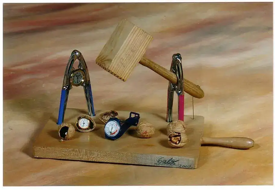 Cogemos el reloj a cascar, lo introducimos en la cavidad de la casca relojes, y este dentro de una bolsa de plástico, lo ajustamos con goma de pollo, y atornillamos, retiramos el cascajo del reloj, y depositando los restos en el contenedor de reciclaje que corresponda.
