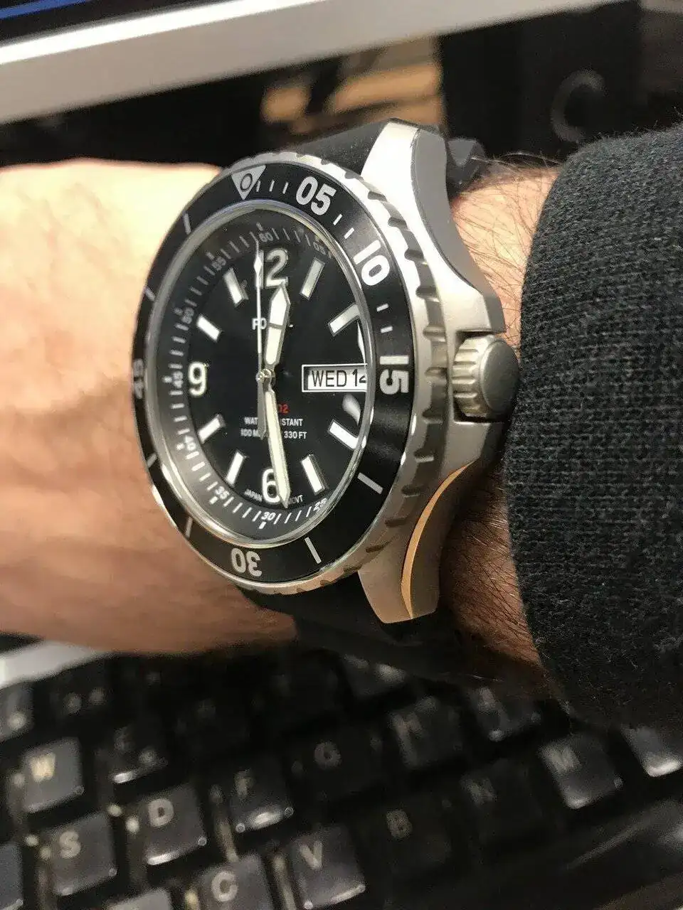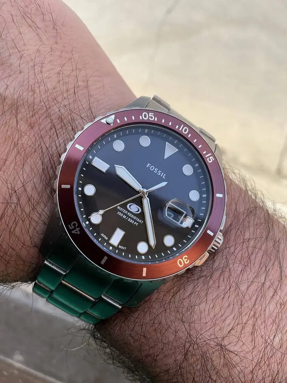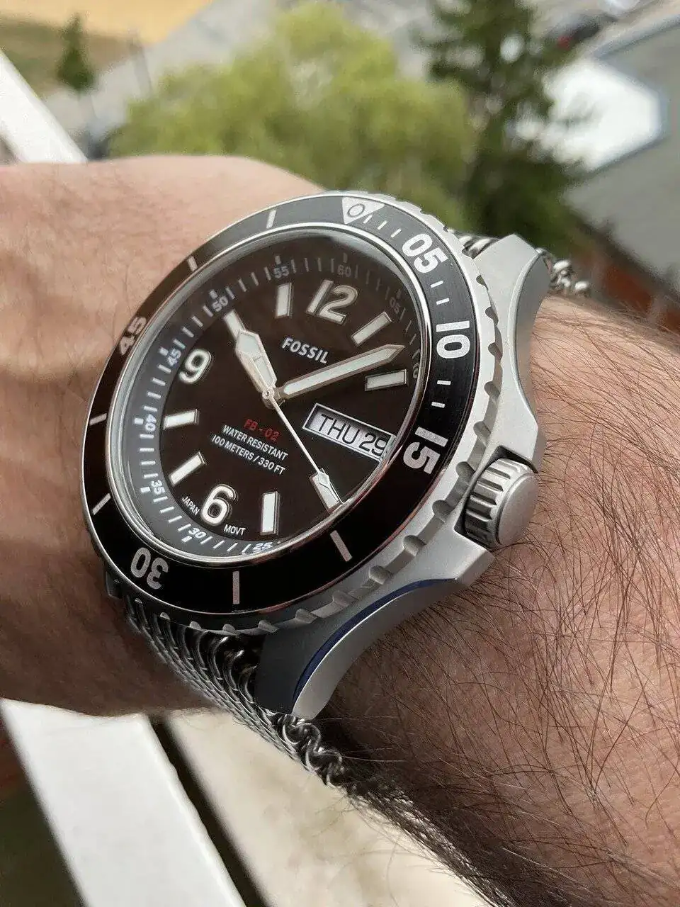 Dentro de la gama de relojes, pseudo deportivos con una resistencia al agua de 100 m, pero con corona sin roscar, presión, fossil tiene una más que interesante muy bien construida. Es la gama FB. Dentro de esta gama tiene la serie 01 y la serie 02.Con sus ediciones limitadas de las que yo en Alemania he conseguido algunos.