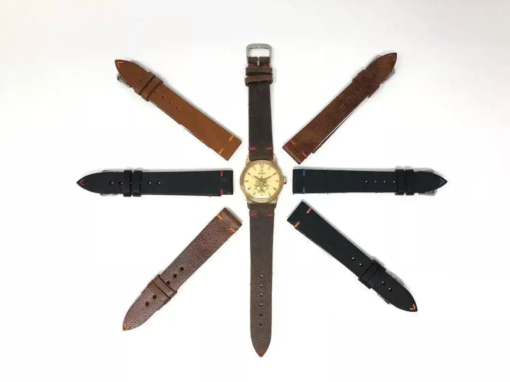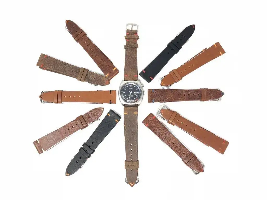 Yo vendo correas,mayormente Vintage,también con pespunte en colores,valen 30€ cada una,de 18,20 y 22m. Tengo también correas de Horween Shell Cordovan a 90€ (PVP 175US$),sólo de 20mm