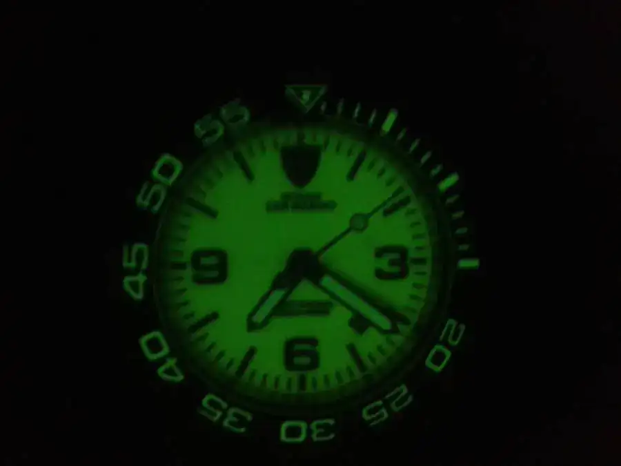 - Superluminova en toda la esfera y en el bisel...es una linterna!! Imagínate la seguridad que te va a dar en las profundidades abisales o de noche cuando no quieras molestar a tu MDD...o símplemente cuando te despiertes y quieras mirarlo y remirarlo!