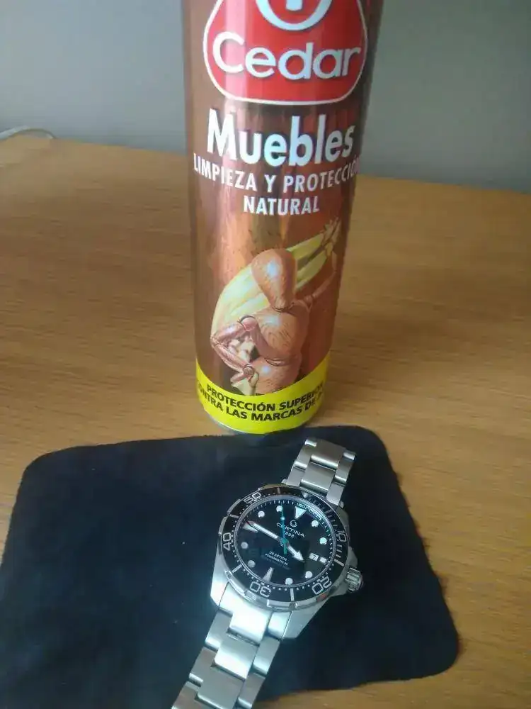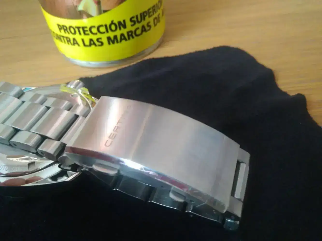 Echando un poco de cantidad en el paño, y sin hacer círculos he frotado suavemente, y luego con una parte del paño seca he hecho lo mismo.