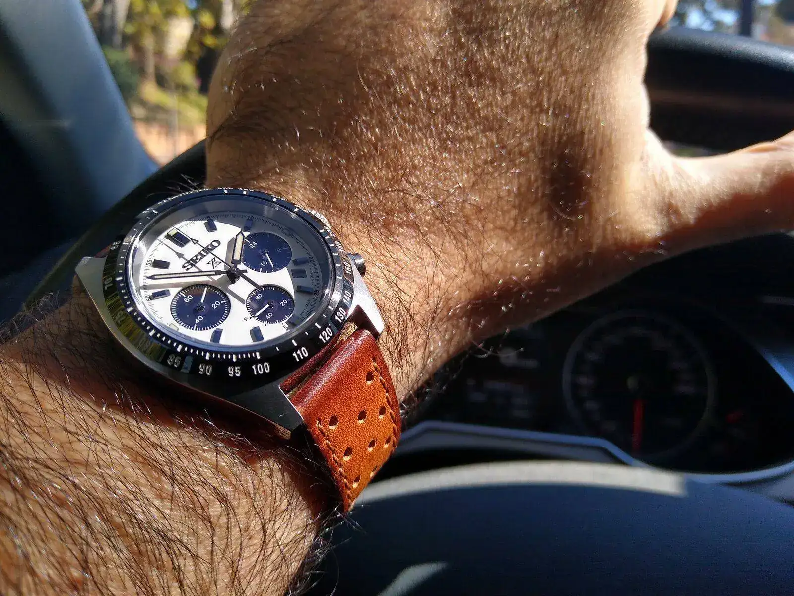 Estos relojes también tienen una opción en la que cuando están a oscuras un rato, se colocan en modo reposo para ahorrar batería. En ese estado no se mueven las manecillas, pero el reloj sigue internamente calculando la hora y una vez que le pulsas un botón o le da la luz, las manecillas se colocan automáticamente en la hora exacta.