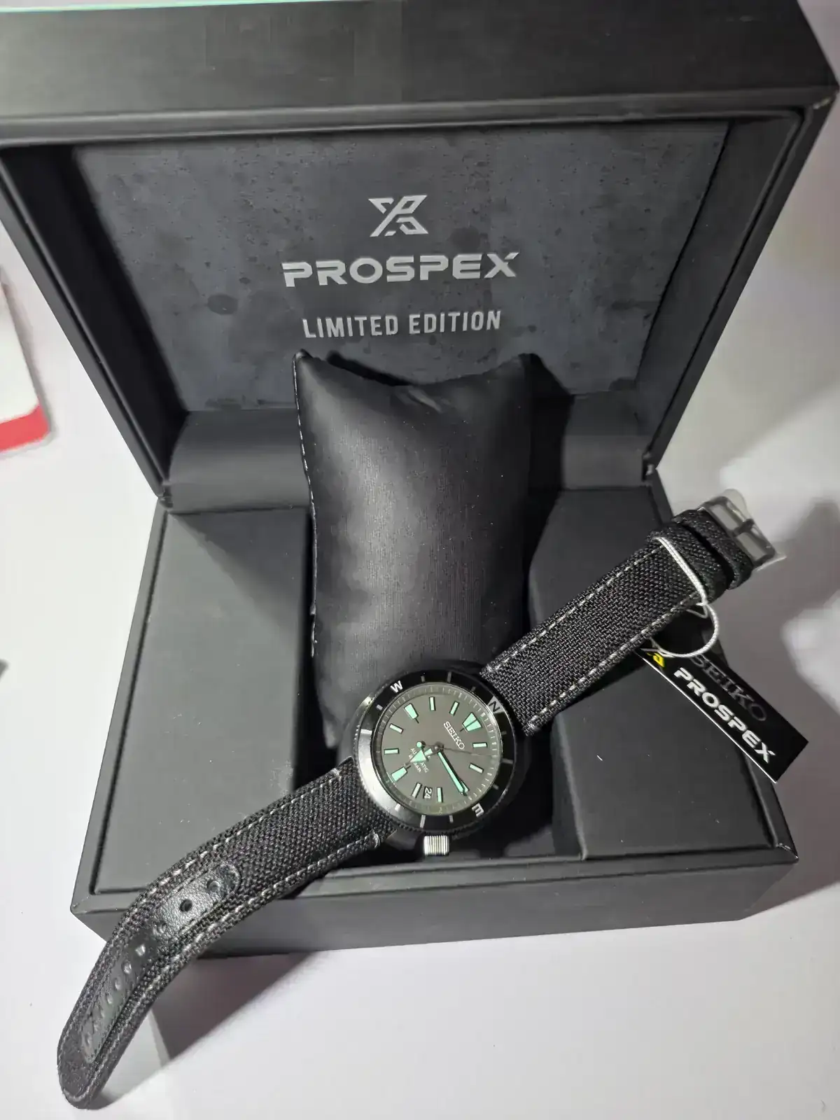 Continuo con este preciso seiko prospex edicion limitada en pvd negro y con correa de tela/goma , que me parece sencillamente precioso , cristal zafiro movimiento 4r34 , una pieza genial
