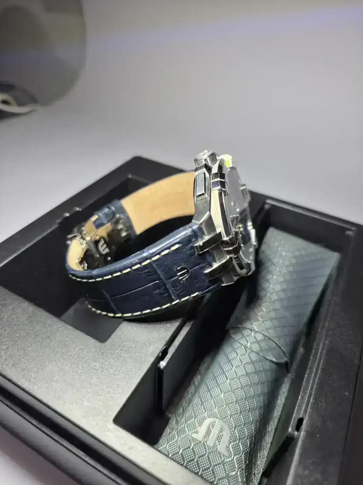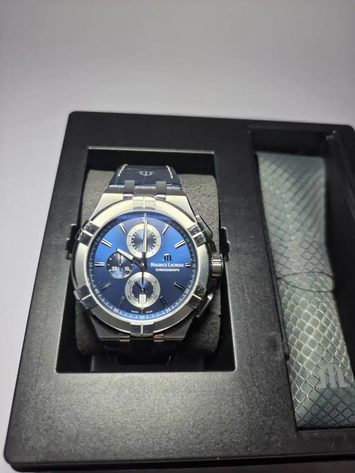 Maurice lacroix aikon chrono , una pieza que para mi es un relojazo , cristal zafiro con antireflejo , unos acabados espectaculares , la correa de piel con la m del logo en metal incrustada en el cuero , cierre deployante de gran calidad , correa integrada con cambio rapido , y una relacion calida/precio abrumadora , ya seee , no es automatico.....pero es muy muy bonito y bueno
